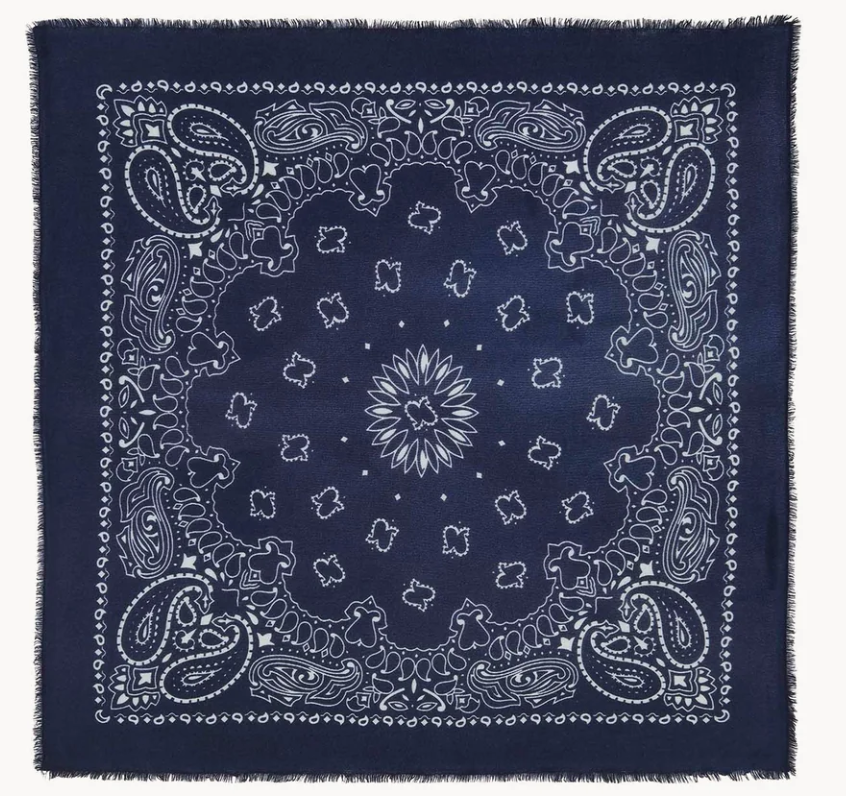 Kujten- Bandana Hachiko Large Printed Cashmere Bandana, -Dark Navy Blue