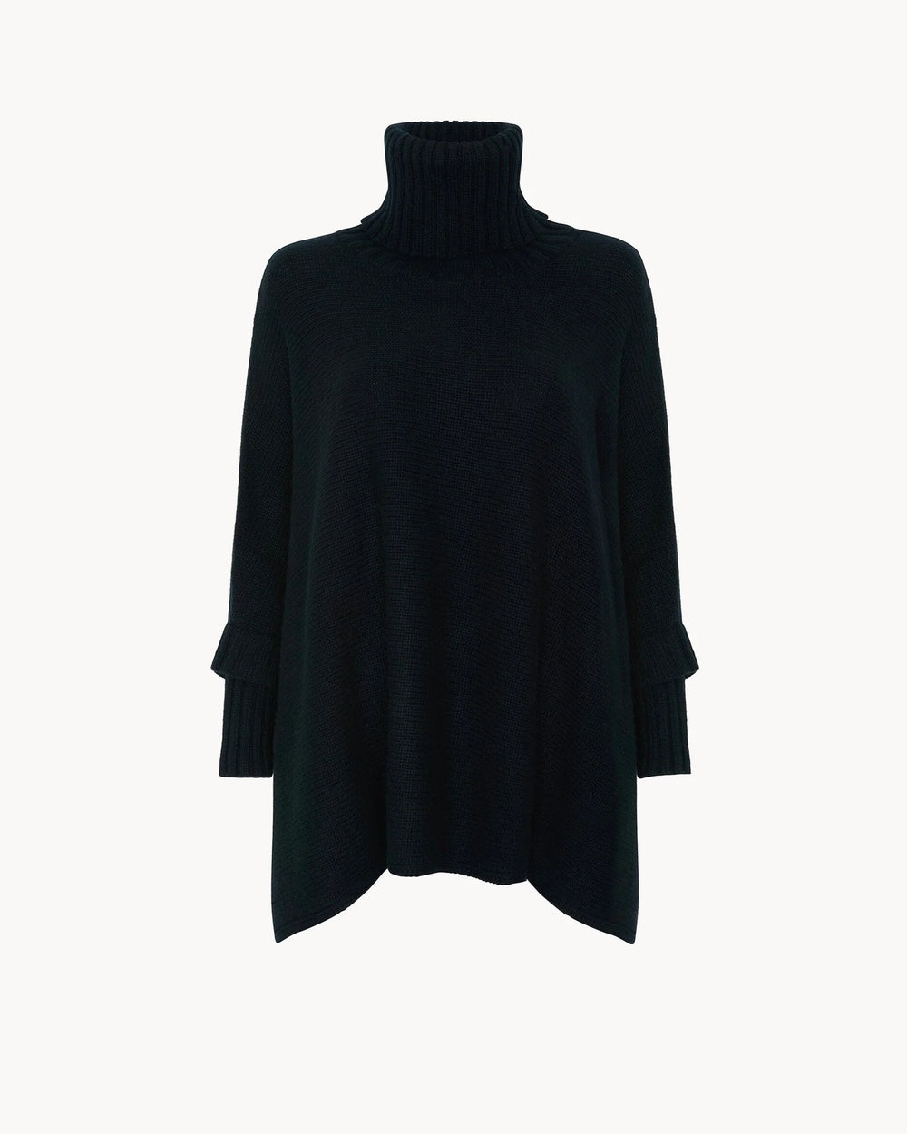 Oversize kesimi ve zamansız siyah tonu ile Poncho Ciara, güçlü ve sofistike bir stil sunar. Boğazlı tasarımı ekstra sıcaklık sağlarken modern ve rahat bir siluet oluşturur.