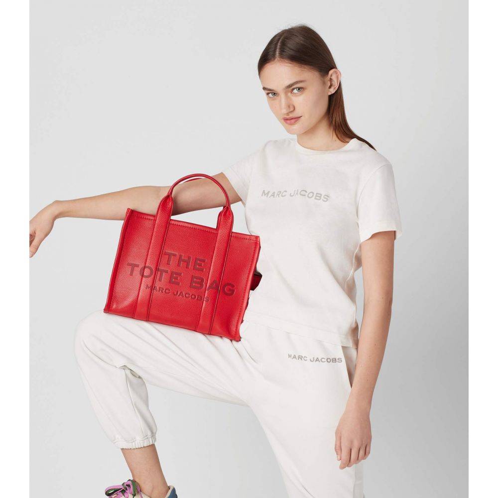 Marc Jacobs The Leather Medium Tote Bag - True Red - HEMEN TESLİMDE
