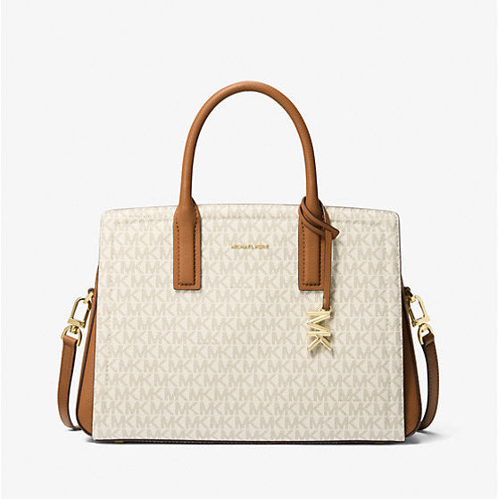 Michael Kors Laila Medium Signature Logo Satchel Vanılla /Acorn