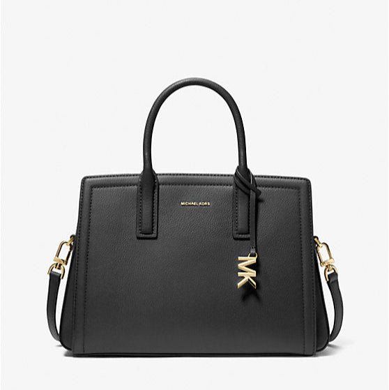 Michael Kors Laila Medium Leather Satchel Black/Gold