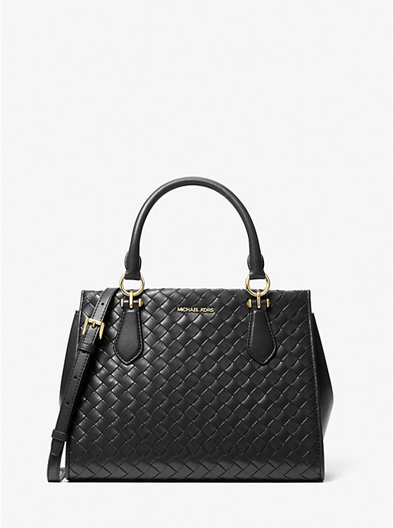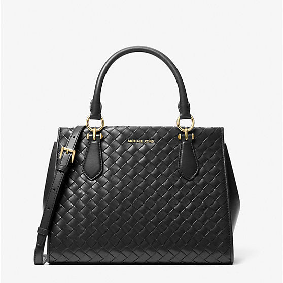 Michael Kors Marilyn Medium Woven Satchel-BLACK