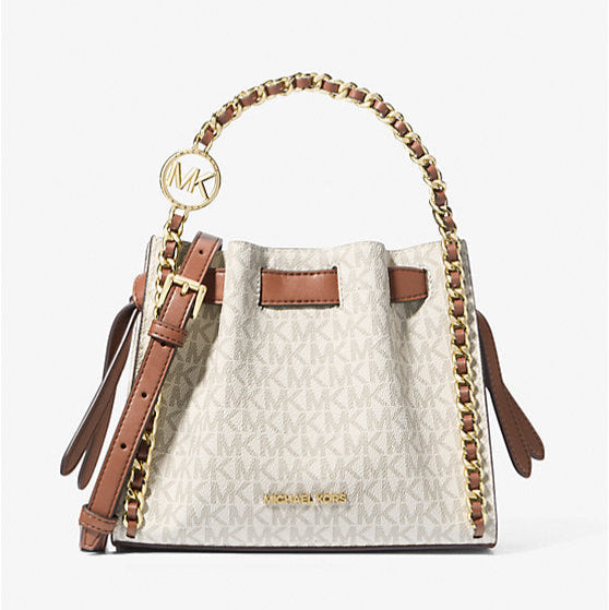 Michael Kors Mina Small Signature Logo Chain Crossbody Bag- VANILLA