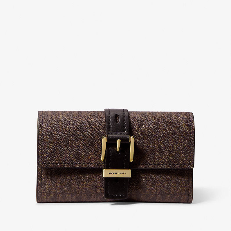 Michael Kors Nolita Medium Signature Logo Tri-Fold Wallet-BROWN/BLK