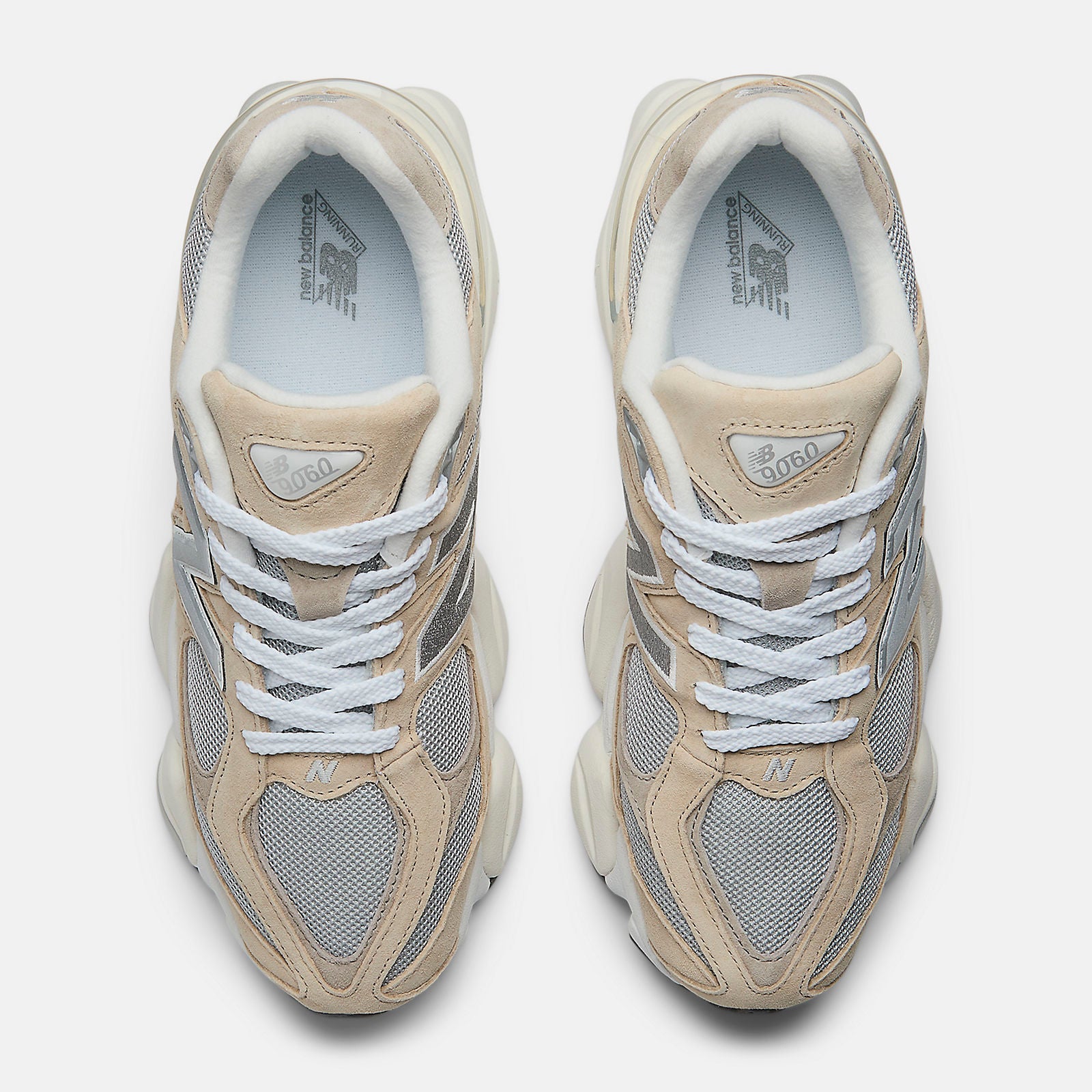 9060, klasik 99X serisinin zarif tarzını ve yenilik odaklı tasarımını yeni bir şekilde ifade eden bir modeldir. 9060, Y2K döneminin gururla sergilenen fütüristik ve görünür teknoloji estetiğinden ilham alarak tanıdık 99X unsurlarını farklı bir bakış açısıyla yeniden yorumlar. 990 modelinden alınan denge çubukları (sway bars) genişletilerek üst yüzey boyunca kullanılmış ve görsel bir hareket hissi yaratılmıştır. Dalgalı çizgiler ve ölçeklendirilmiş oranlara sahip heykelsi bölmeli orta taban, ABZORB ve SBS yastıklama sistemlerine aşırı bir vurgu yaparak onları daha belirgin hale getirir.