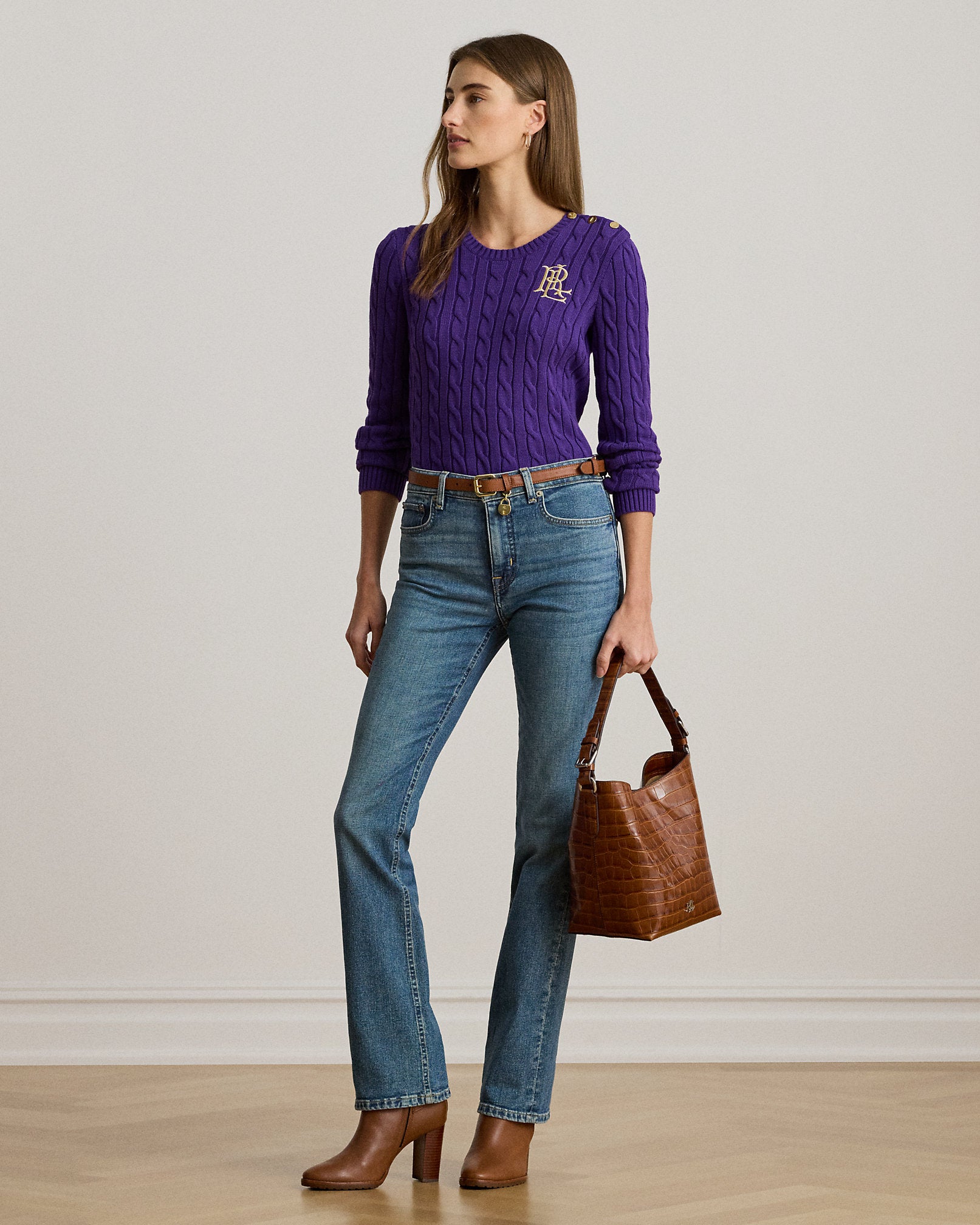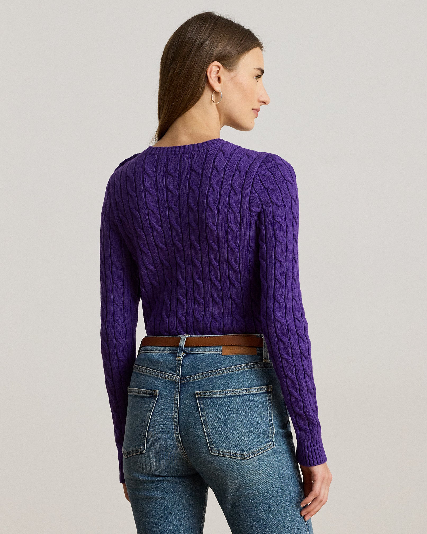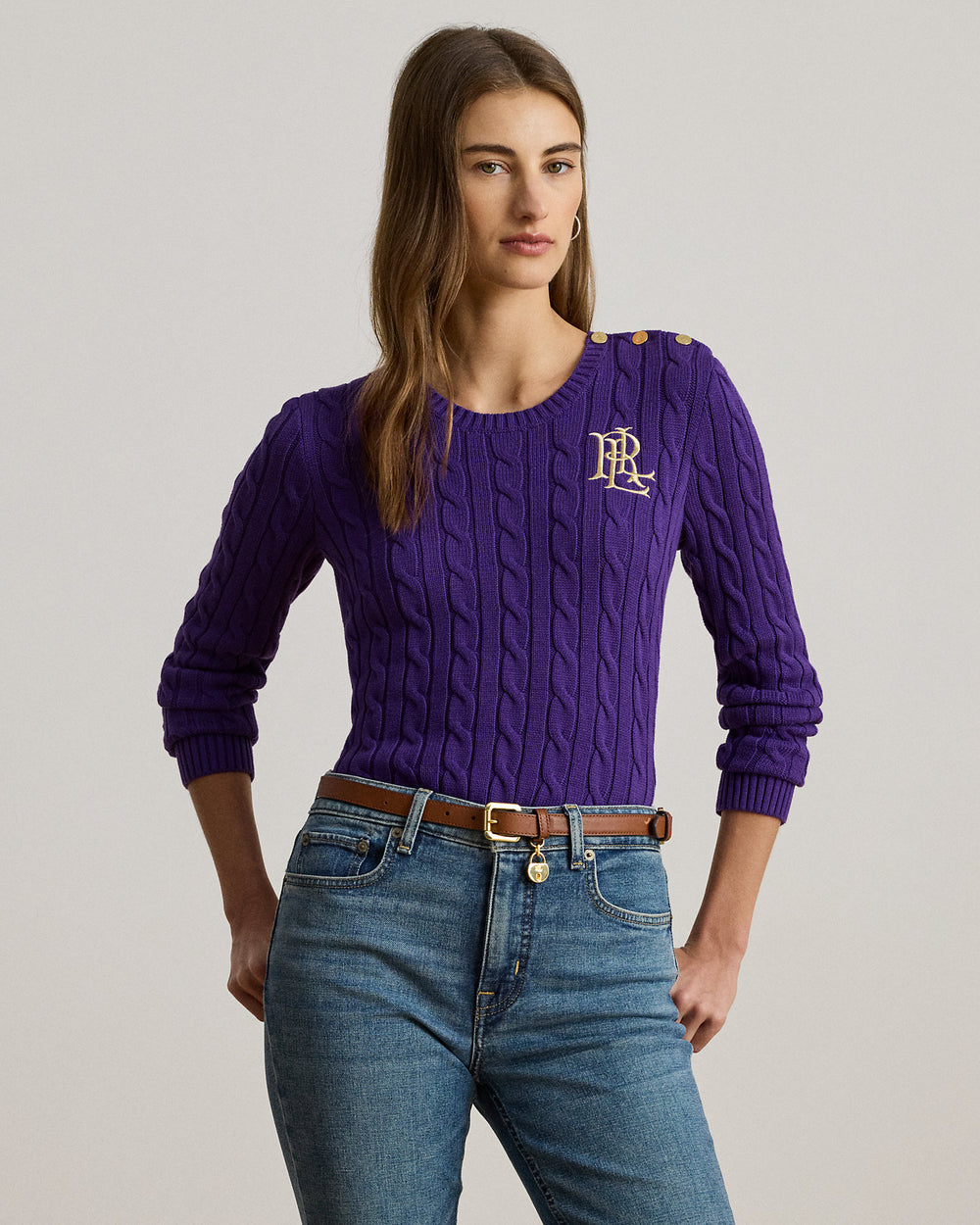 Ralp Lauren Women Button-Trim Cable-Knit Cotton Sweater- Violet Gem