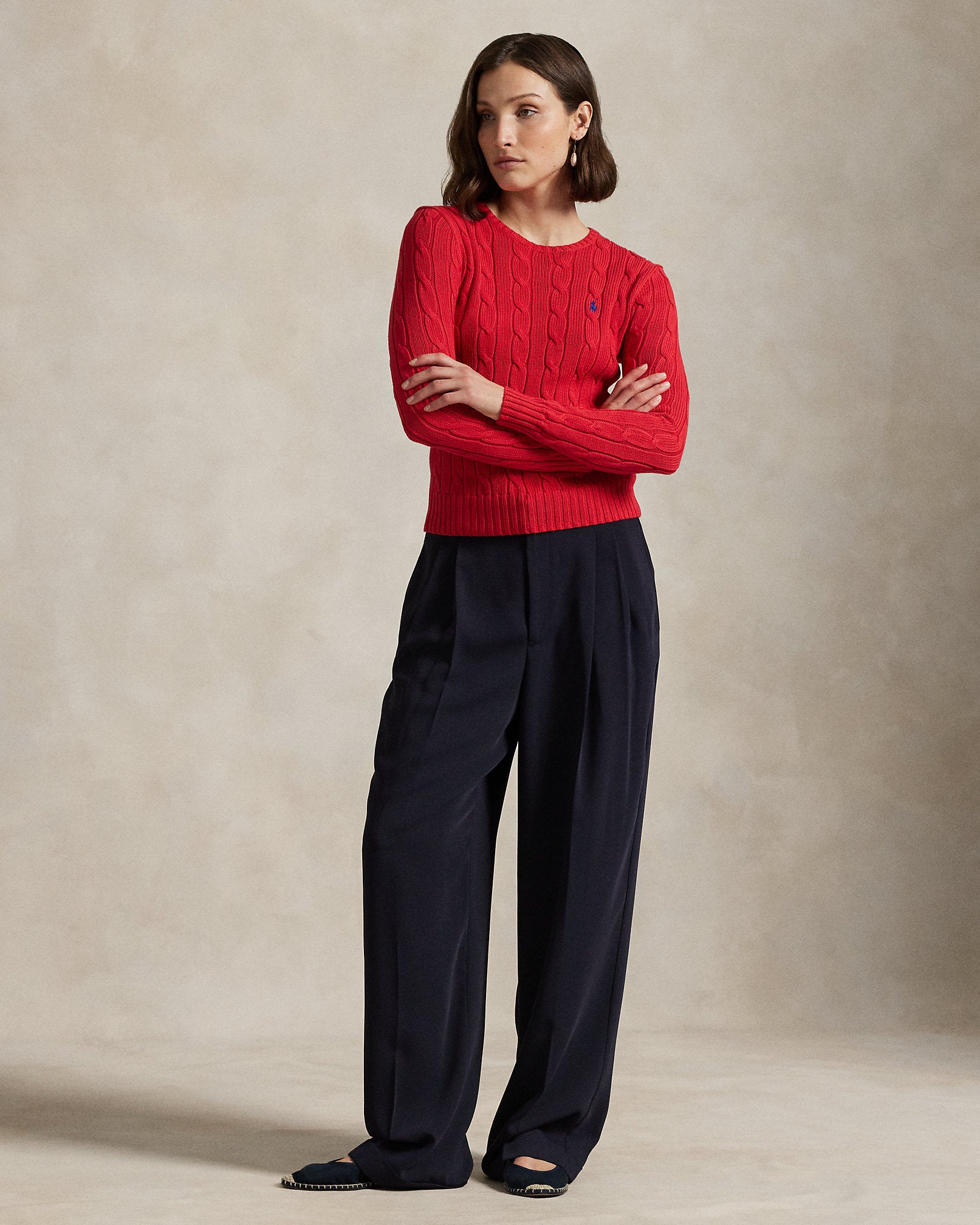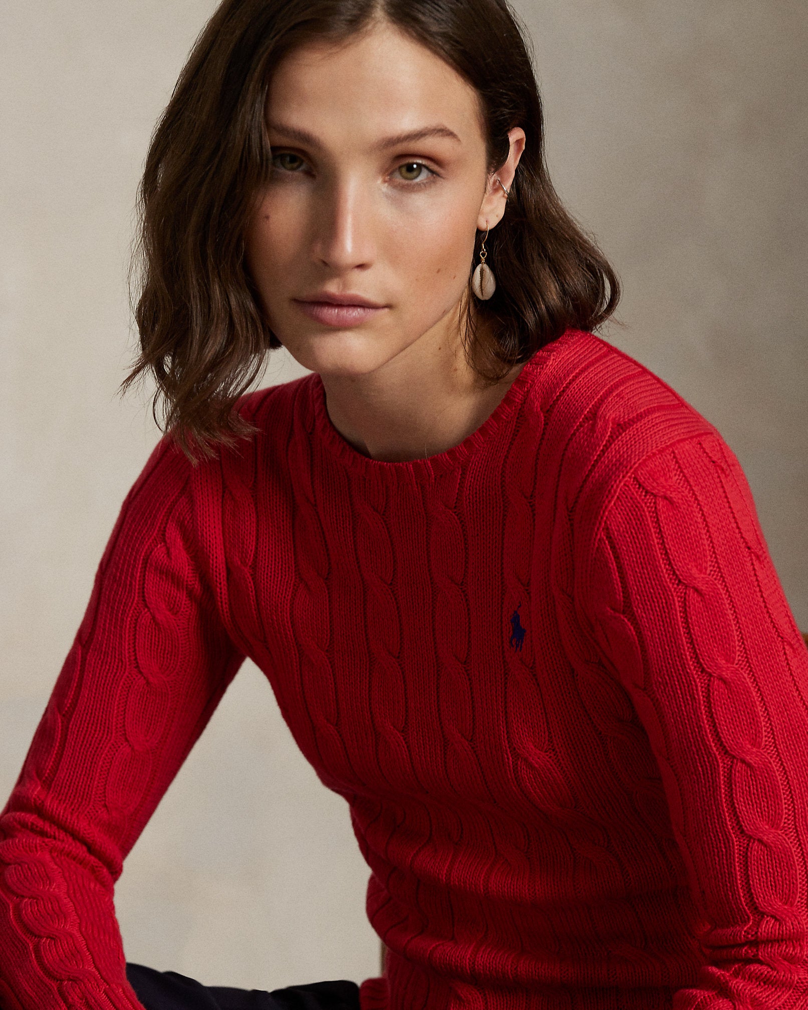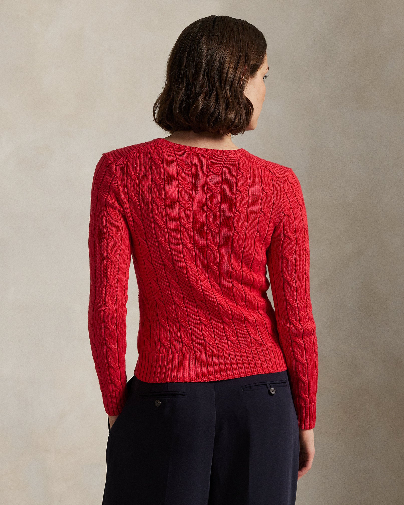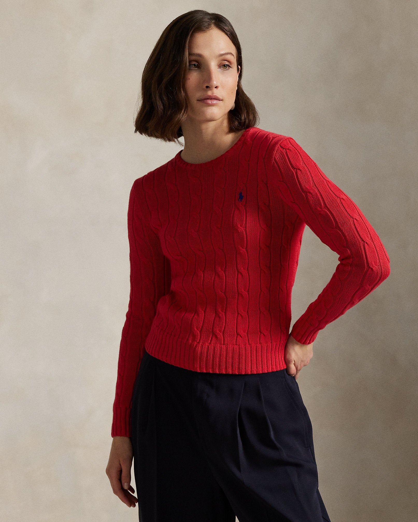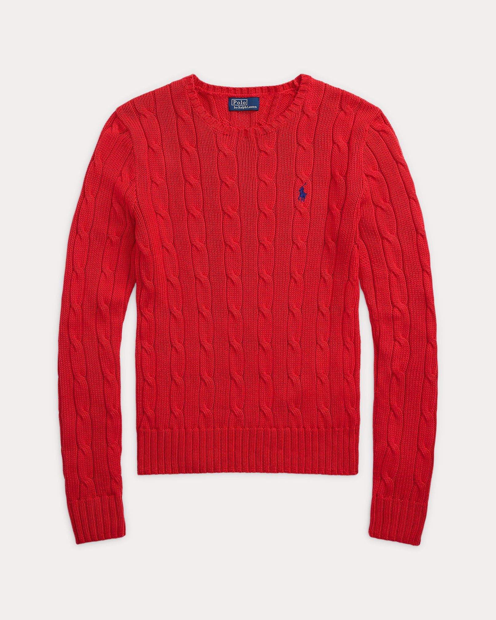 Ralph Lauren Cable-Knit Cotton Crewneck Sweater-Deep Orangey Red