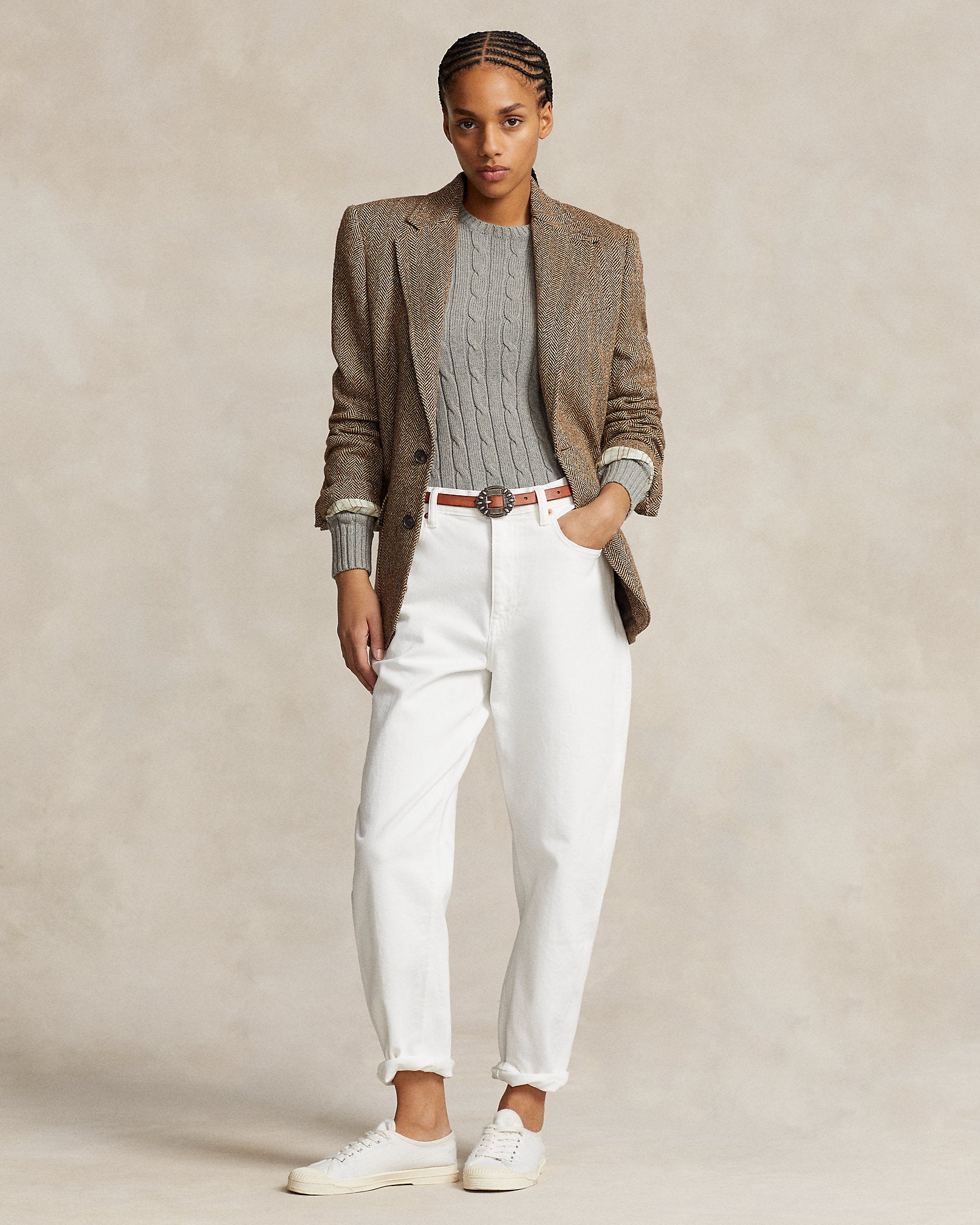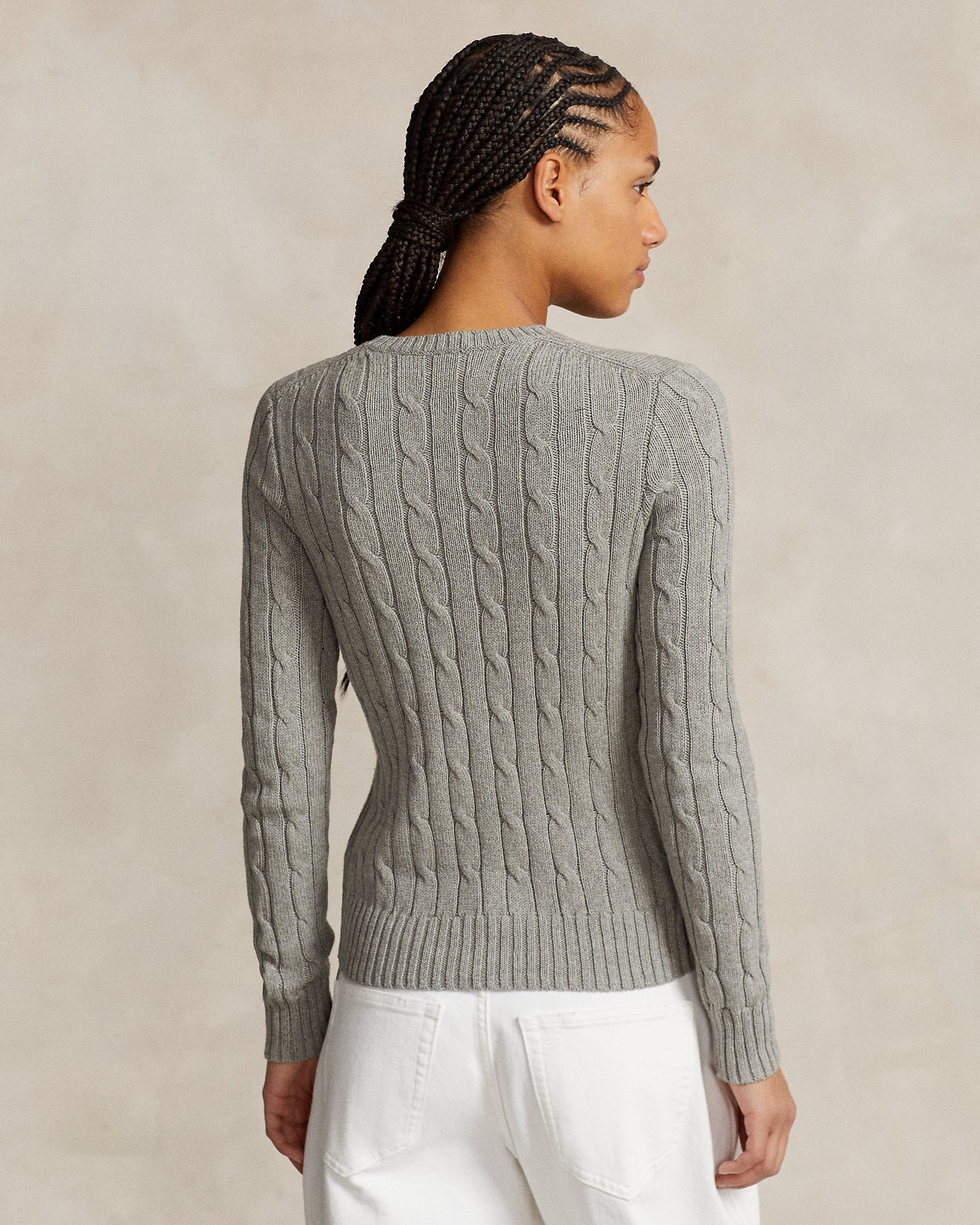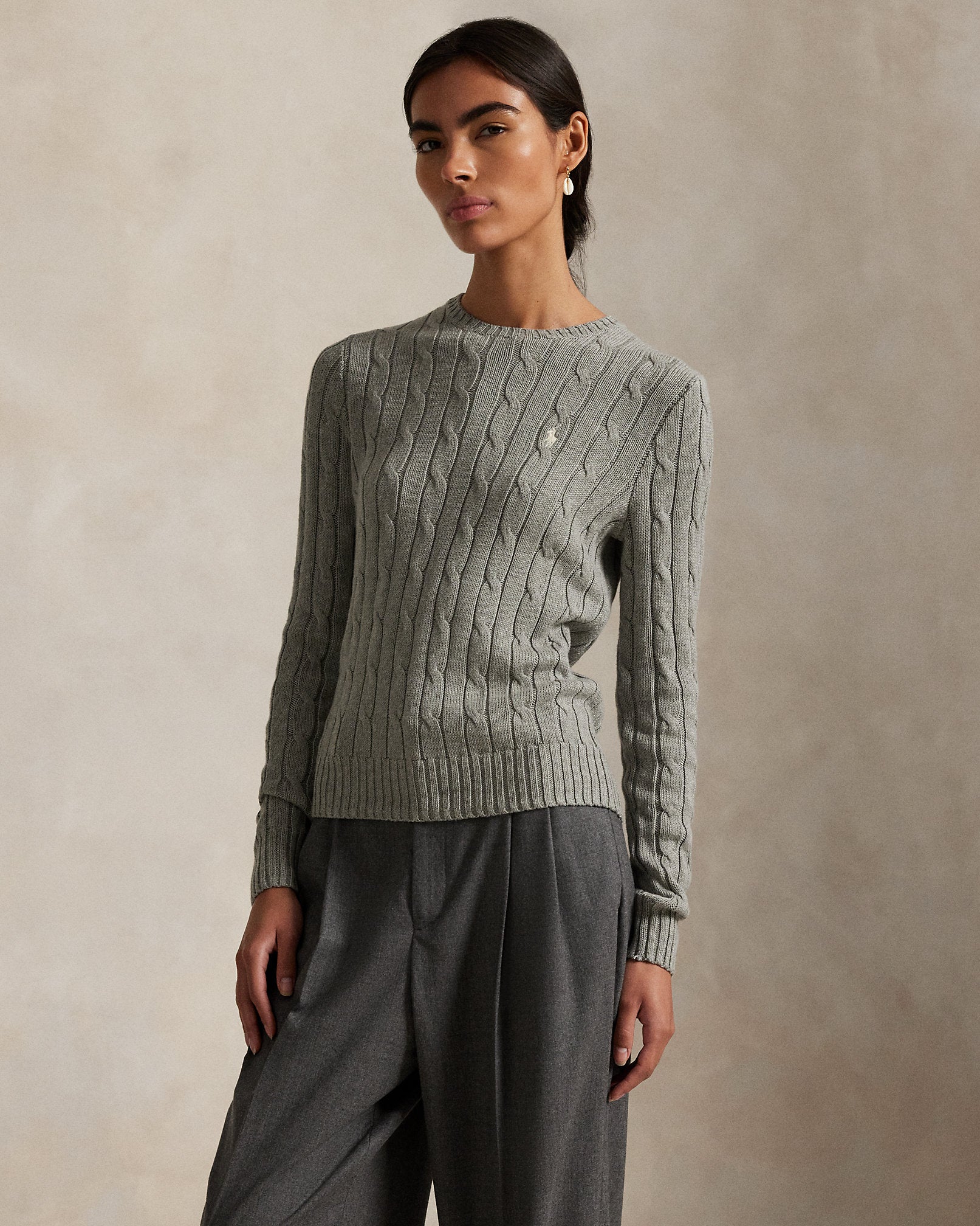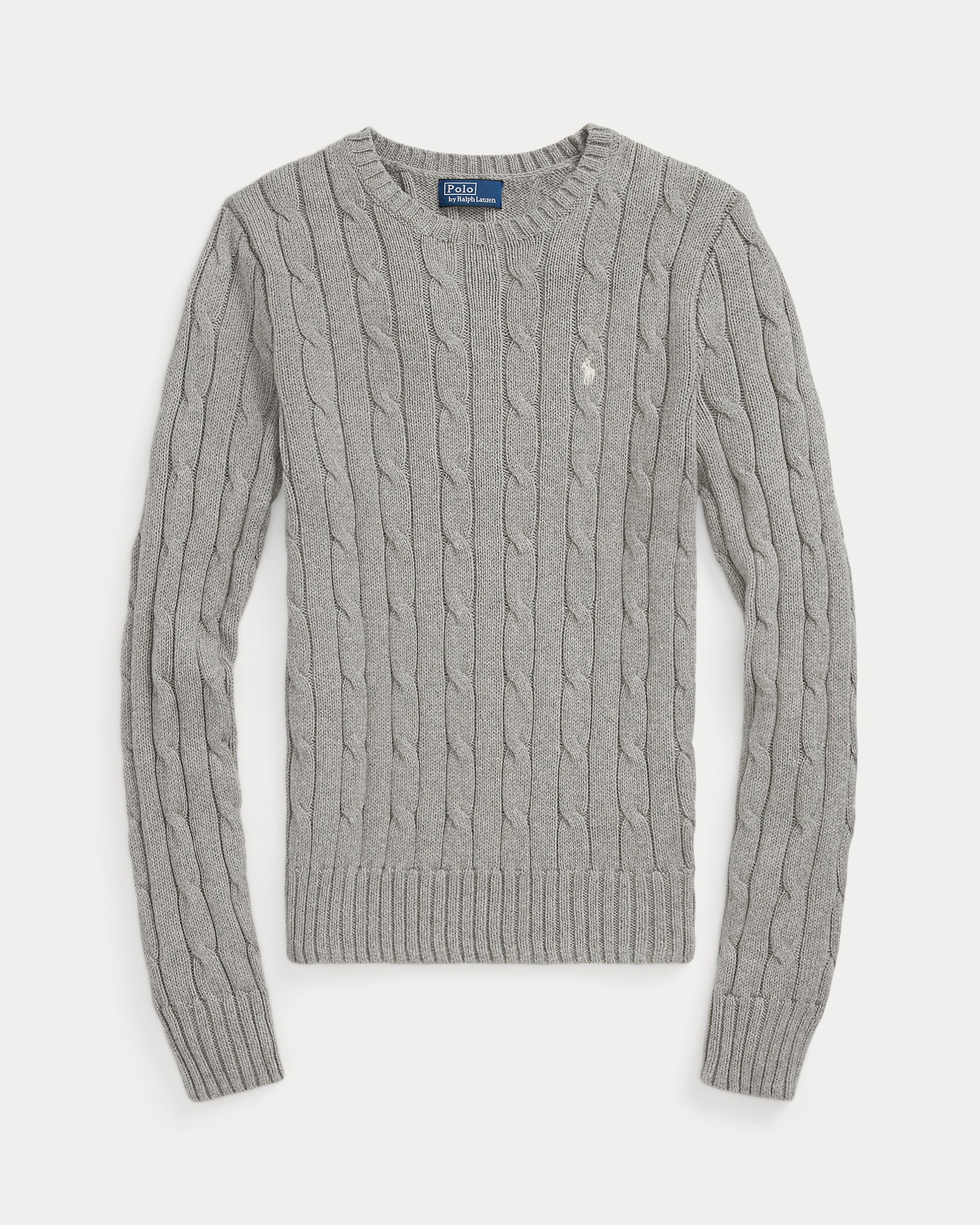 Ralph Lauren Cable-Knit Cotton Crewneck Sweater- Fawn Grey Heather