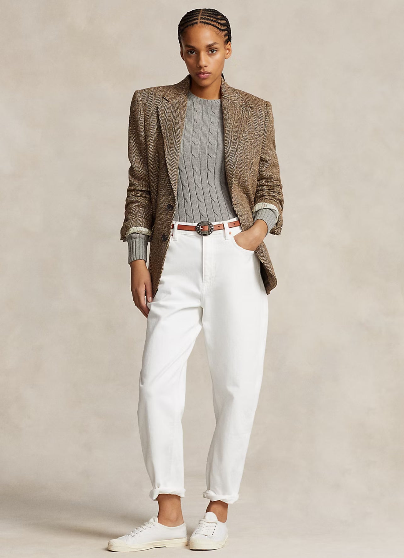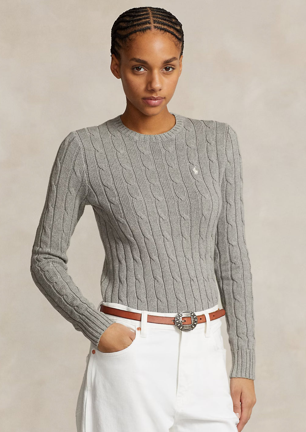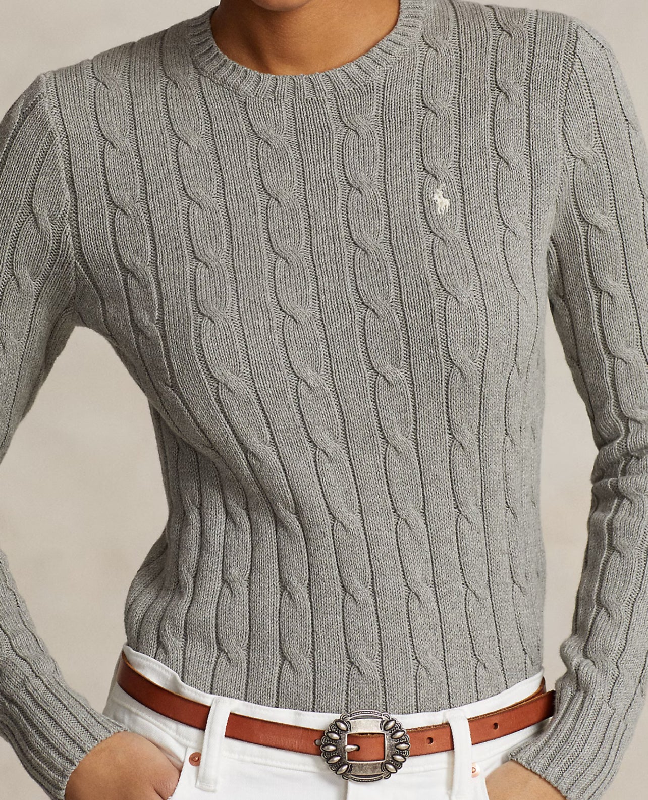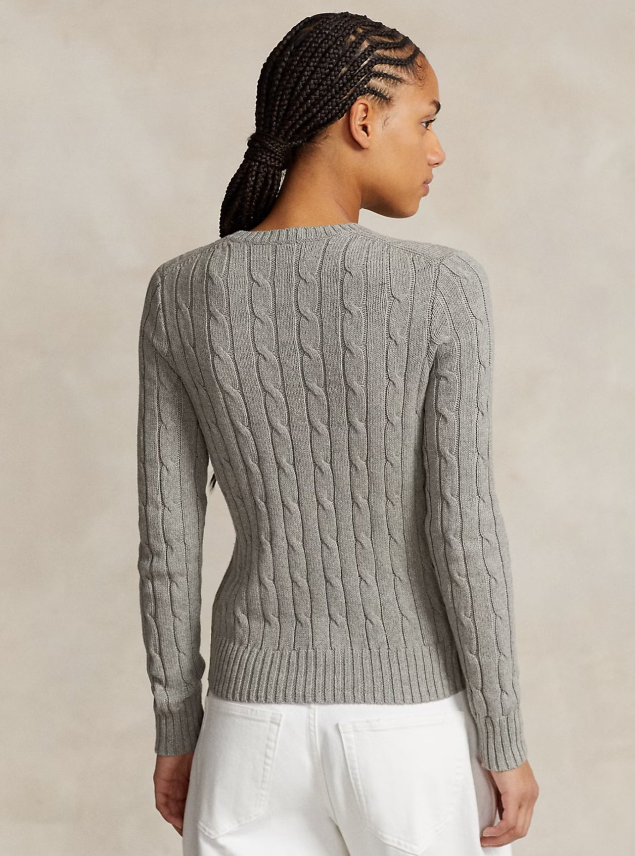 Ralph Lauren Cable-Knit Cotton Crewneck Sweater Grey- Outlet
