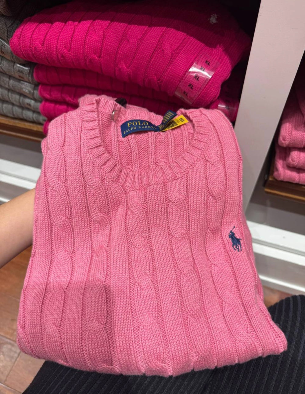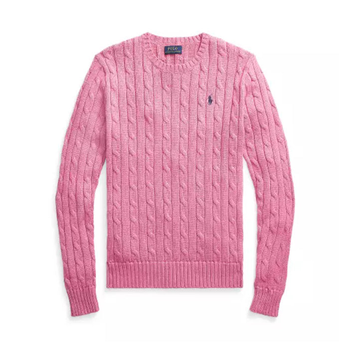 Ralph Lauren Cable-Knit Cotton Crewneck Sweater Pink- Outlet