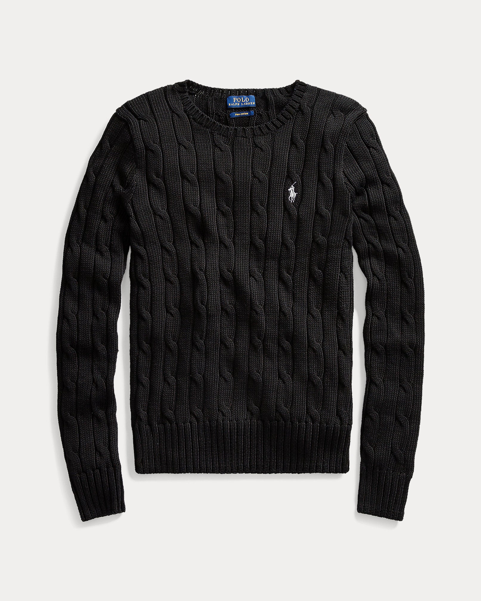 Ralph Lauren Cable-Knit Cotton Crewneck Sweater- Polo Black White PP
