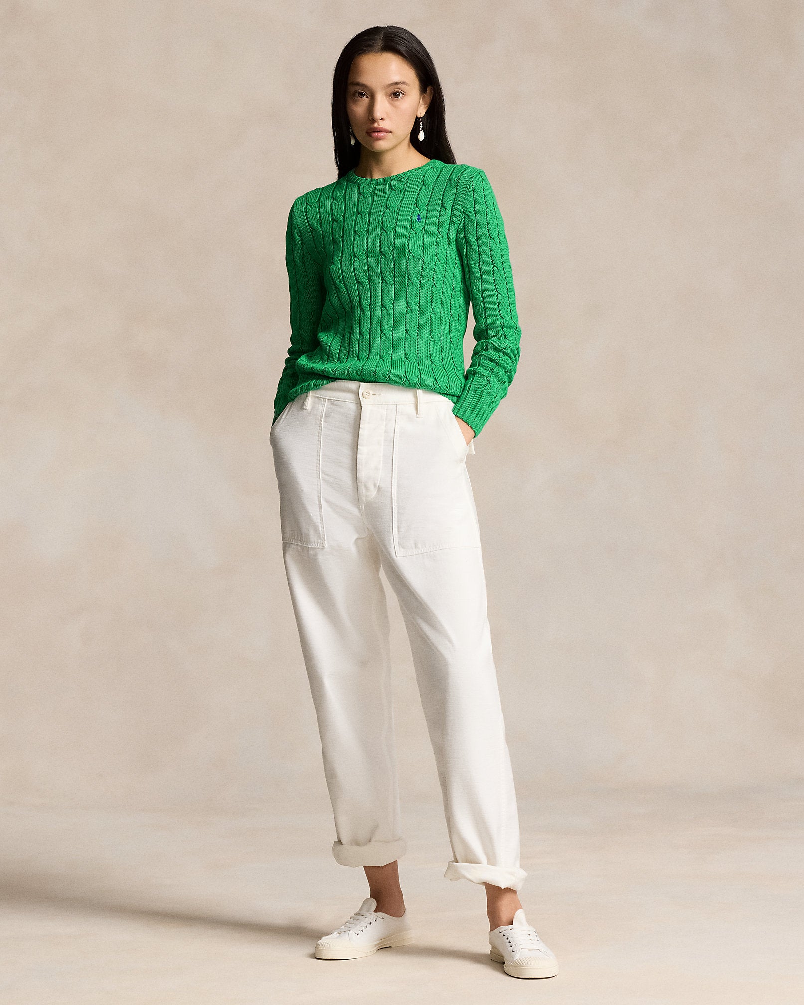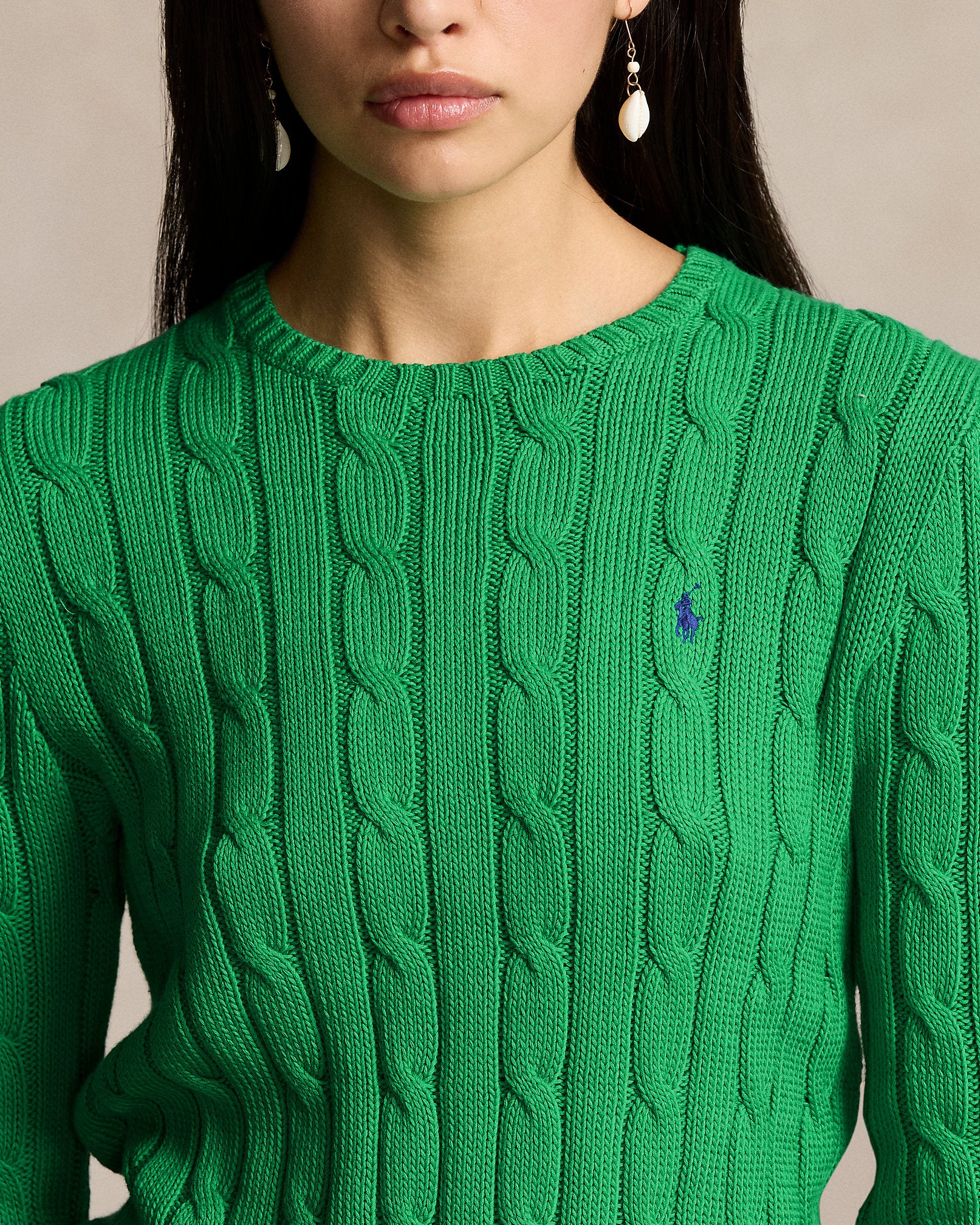 Ralph Lauren Cable-Knit Cotton Crewneck Sweater-Preppy Green