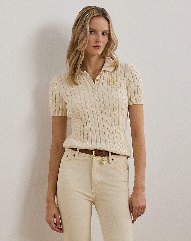 Ralph Lauren Women's Cable-Knit Cotton Polo Sweater - Mascarpone Cream
