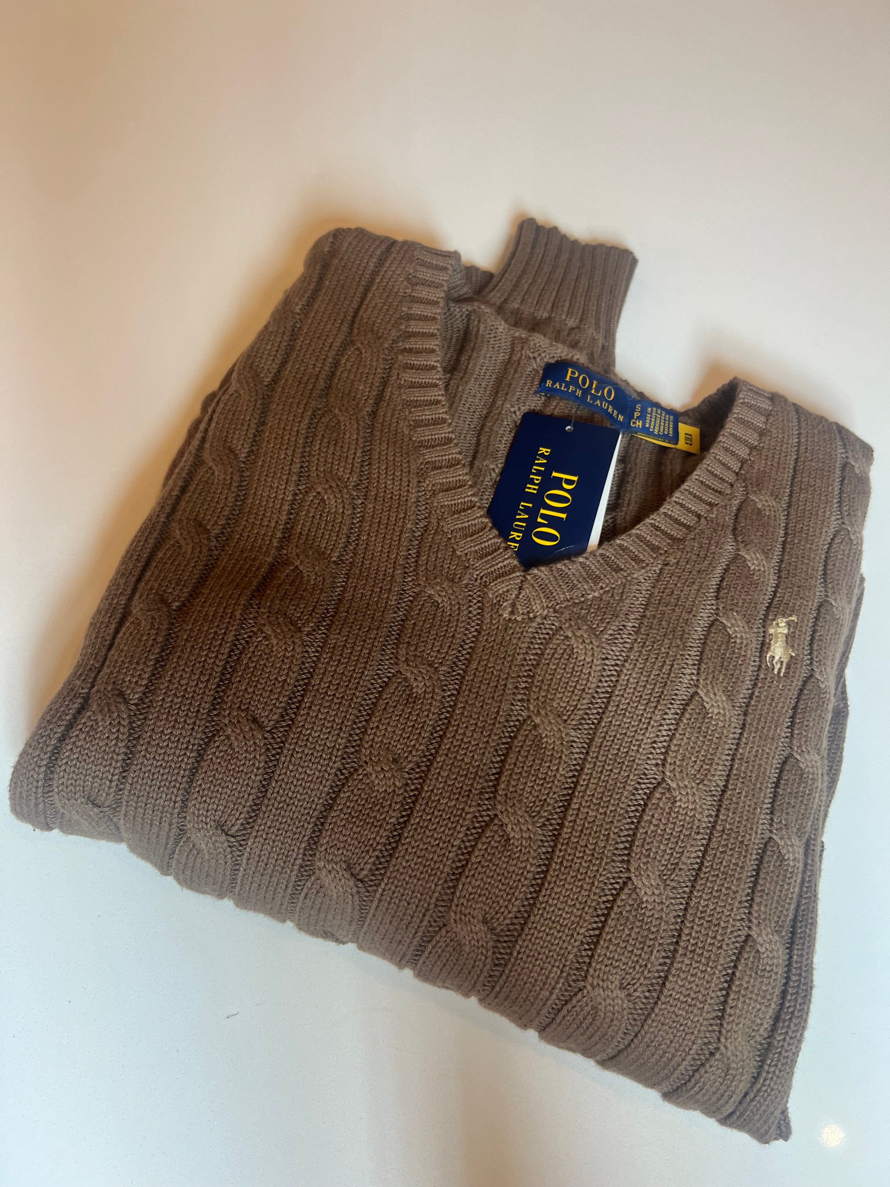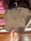 Ralph Lauren Cable-Knit Cotton V-Neck Sweater - OUTLET
