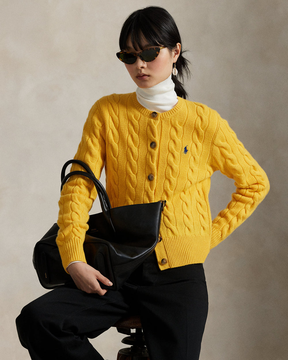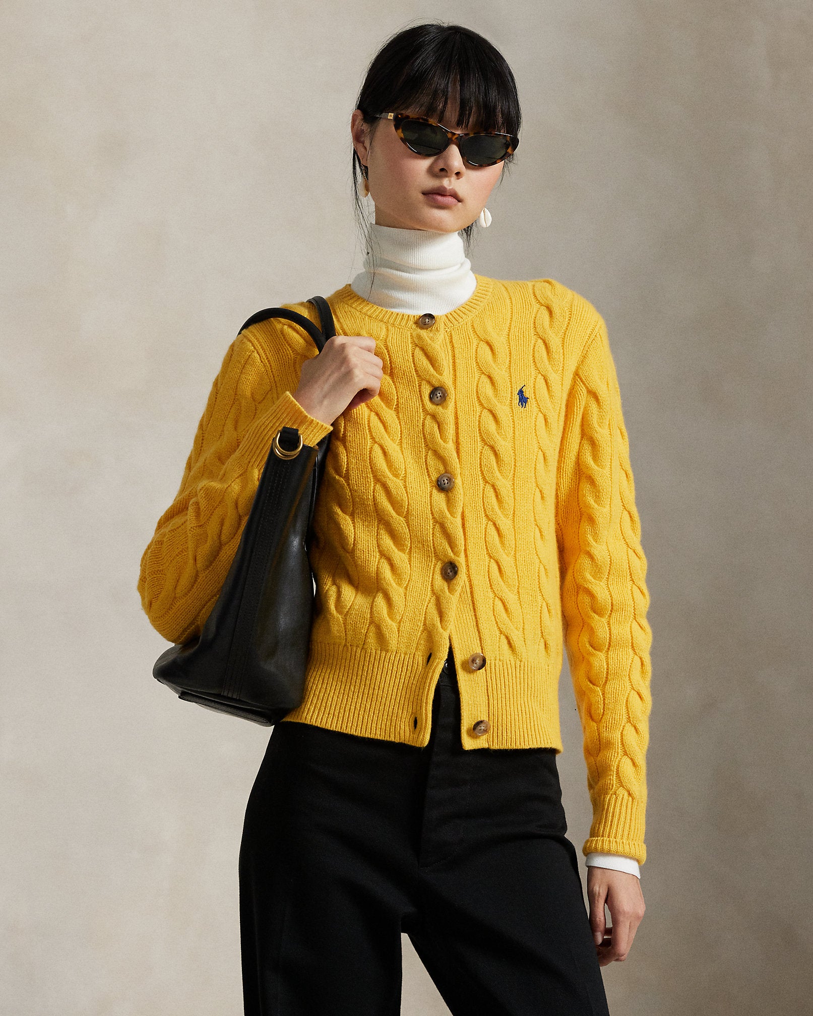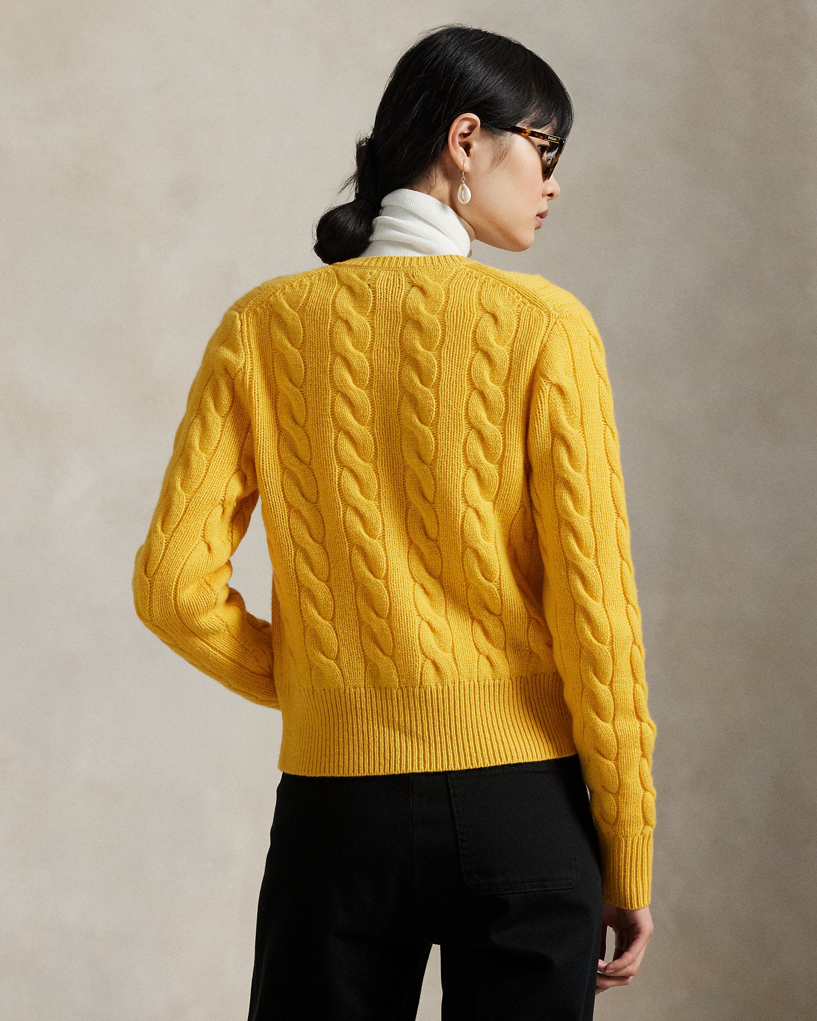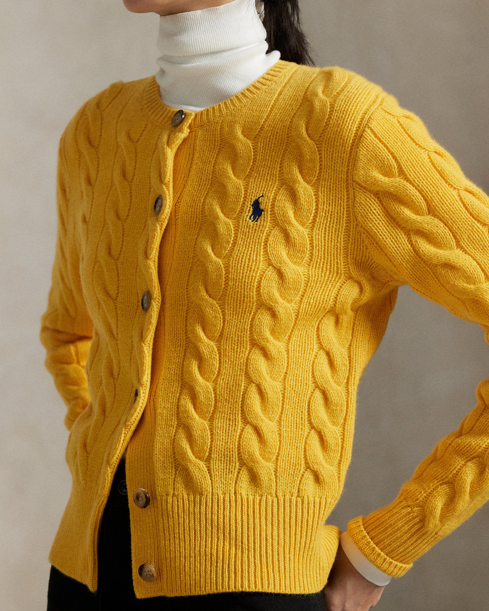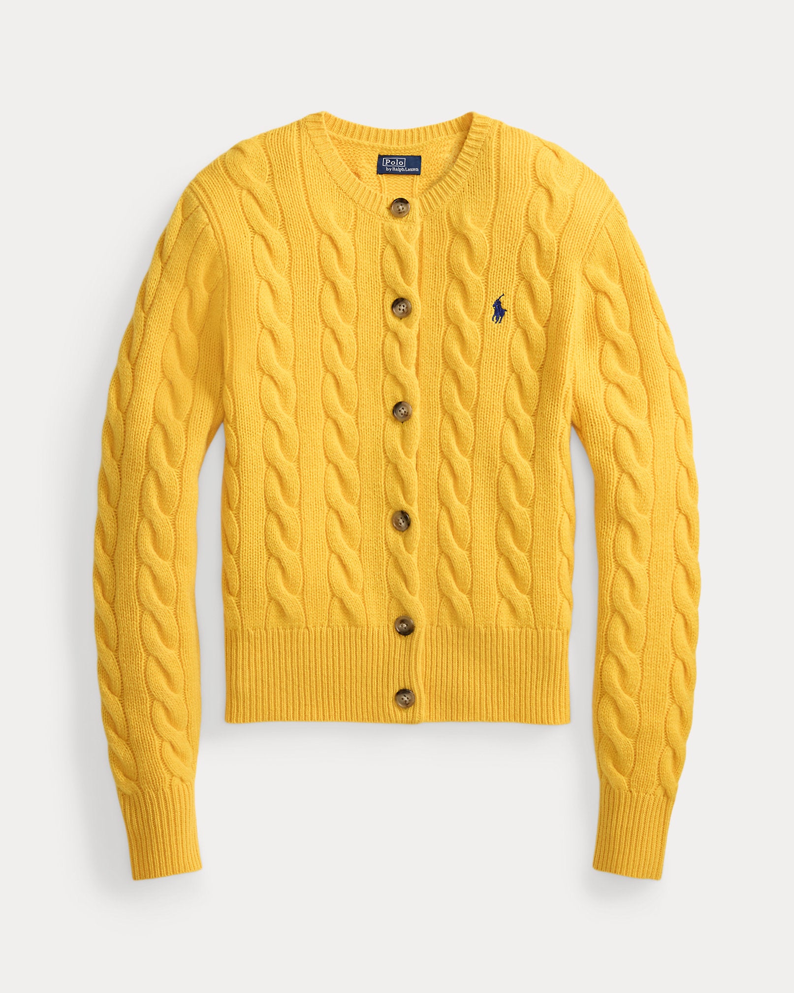 Ralph Lauren Cable-Knit Wool-Cashmere Cardigan-Mustard Yellow