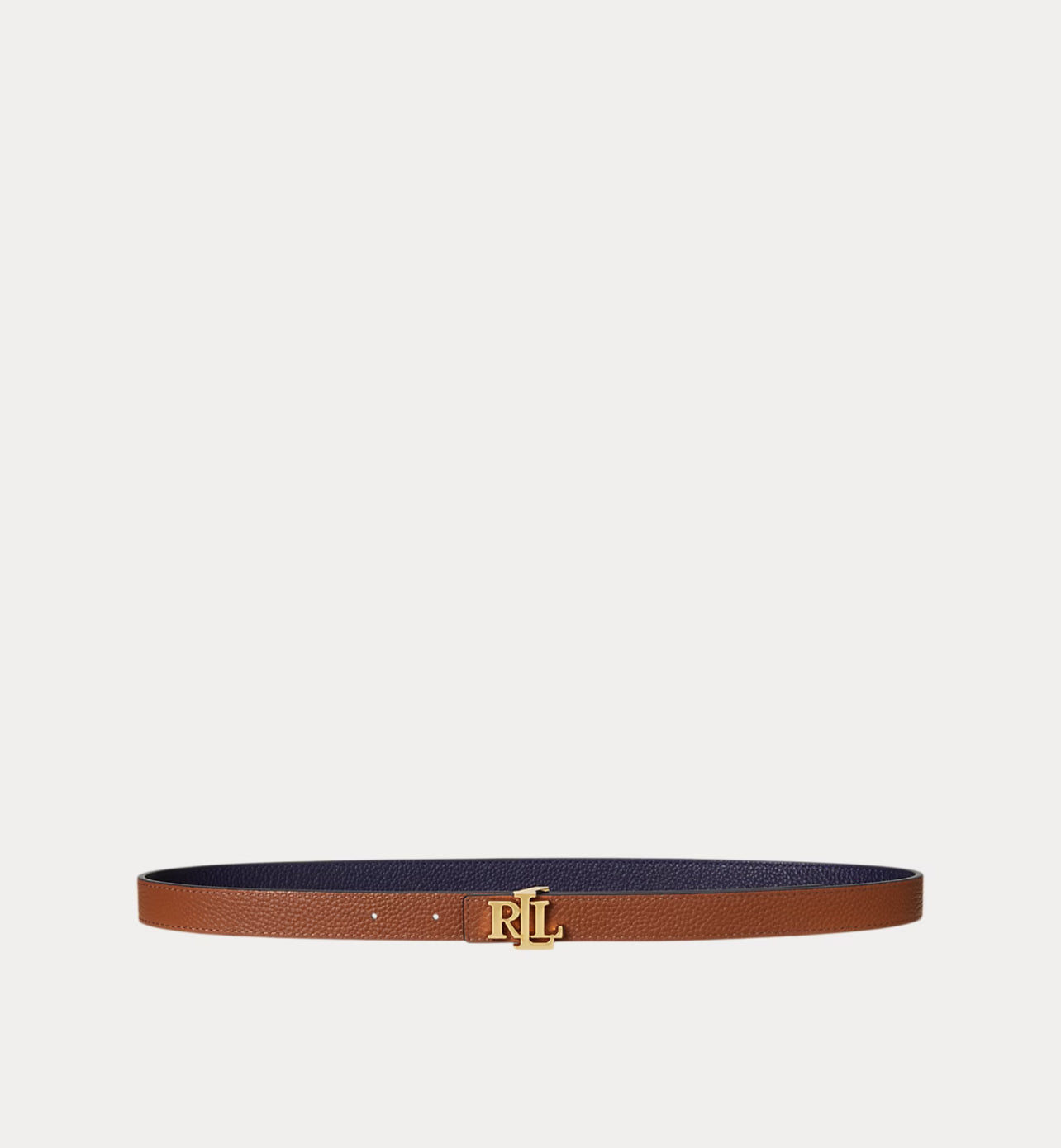 Ralph Lauren Logo Reversible Leather Skinny Belt Refined Navy/Lauren Tan Çift Taraflı Kadın Deri Kemer (2cm)- Hemen Teslimde