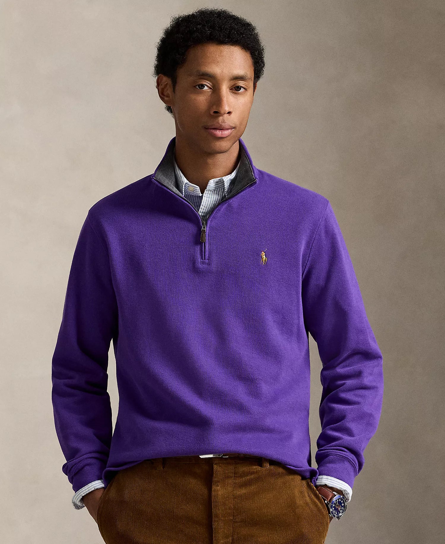 Ralph Lauren Men's Estate-Rib Cotton Quarter-Zip Pullover-Cabana Purple/Barlcay Heather Int