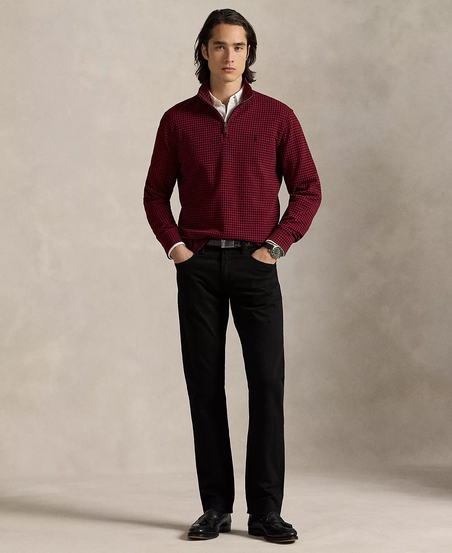 Ralph Lauren Men's Estate-Rib Cotton Quarter-Zip Pullover-Micro Holiday Check- Red