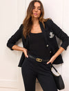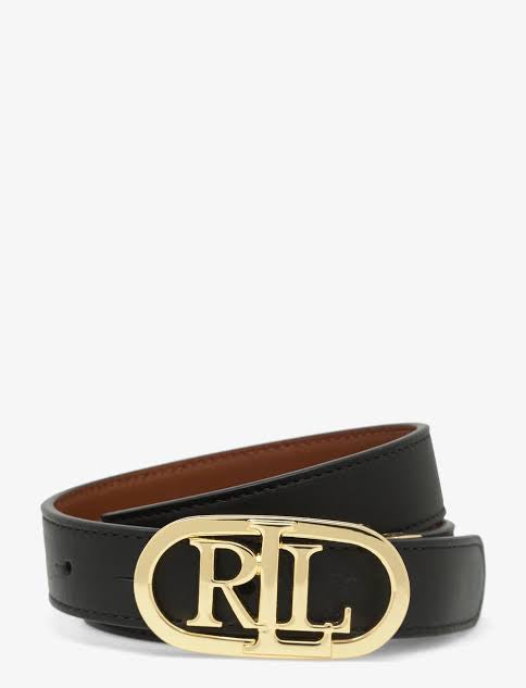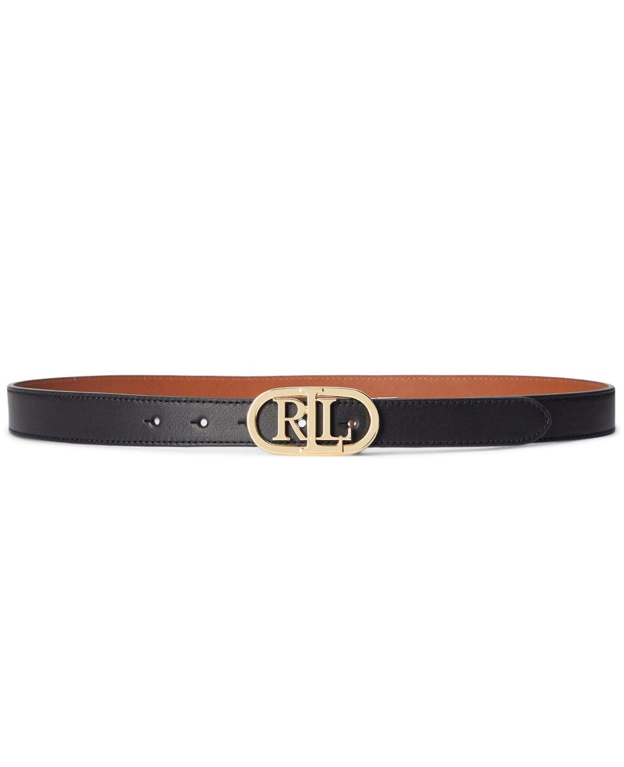Ralph Lauren Oval-Logo Reversible Leather Skinny Belt Black Tan