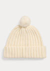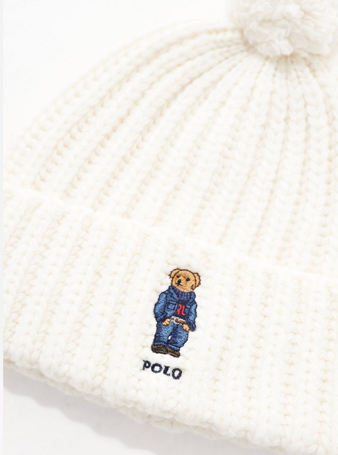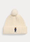 Ralph Lauren Polo Bear Rib Pom-Pom Beanie in Cream