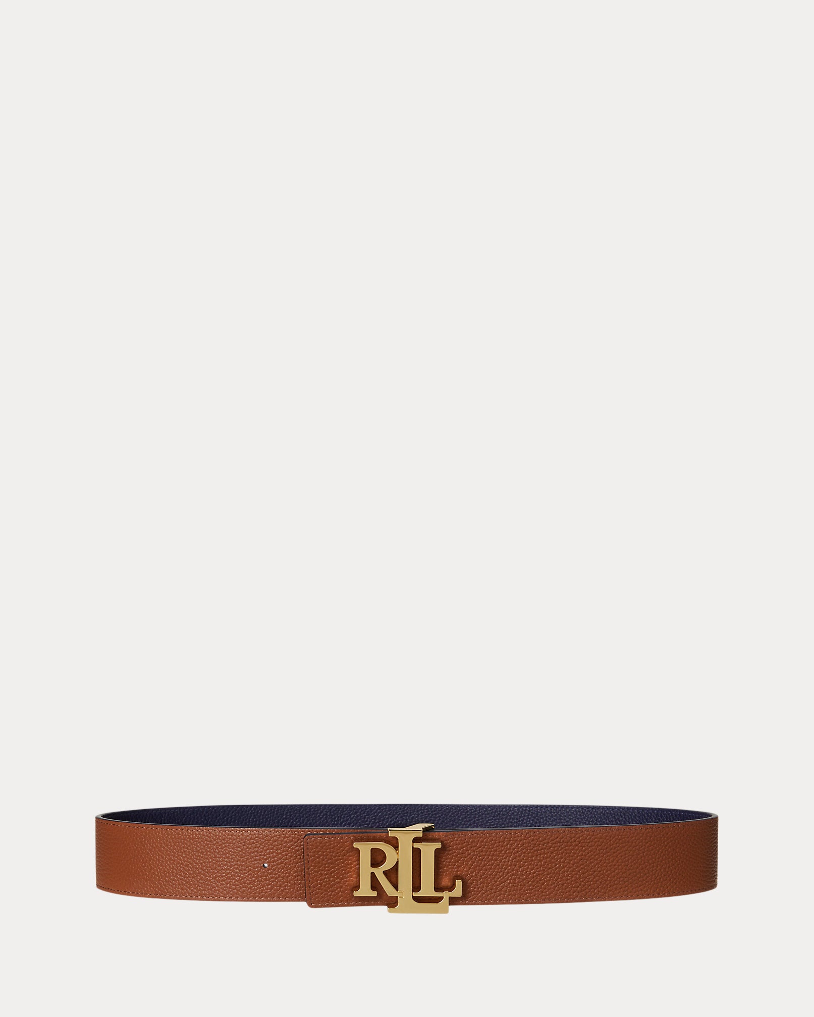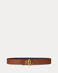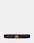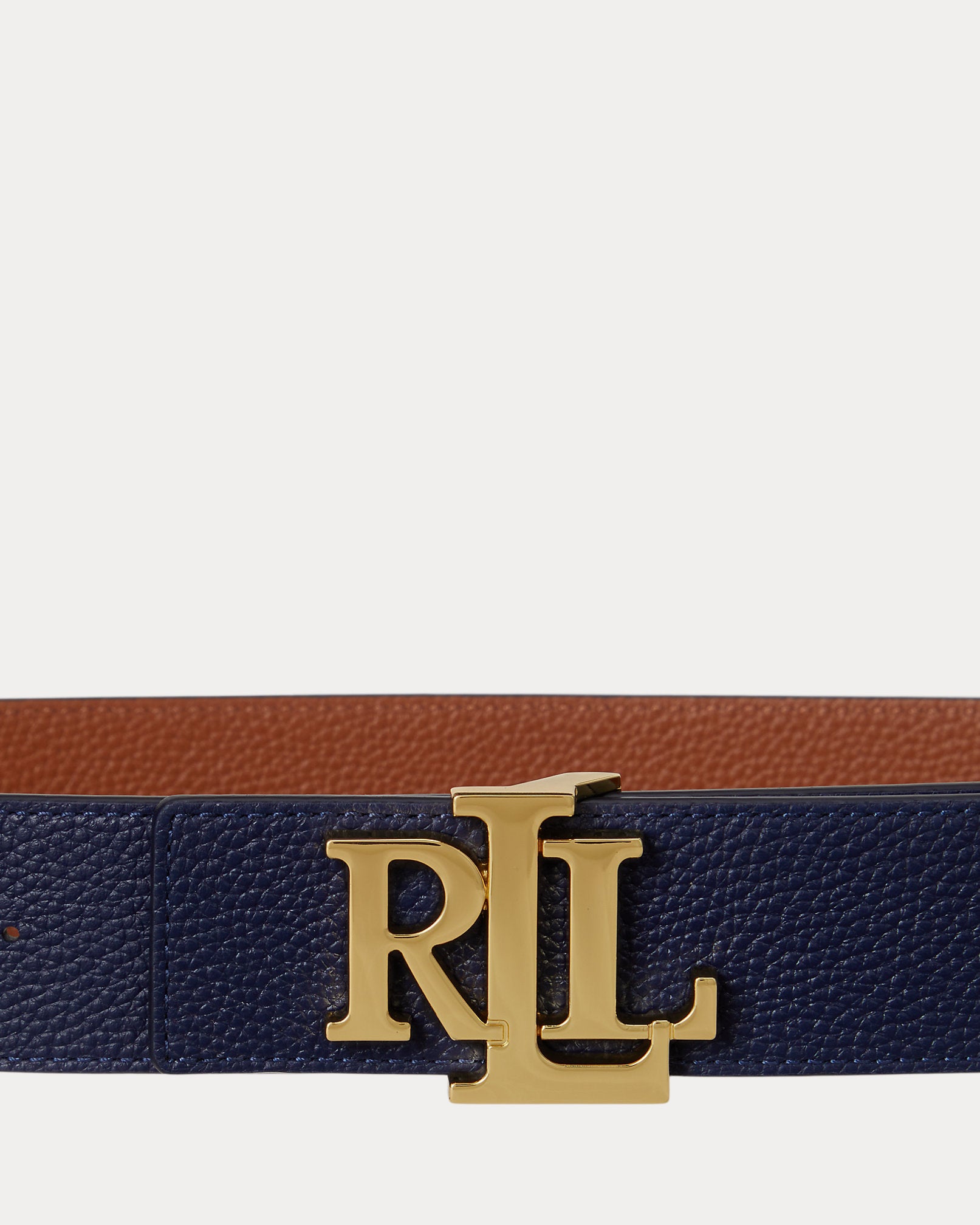 Ralph Lauren Reversible Pebbled Leather Wide Belt ( 4cm ) Refined Navy/Lauren Tan