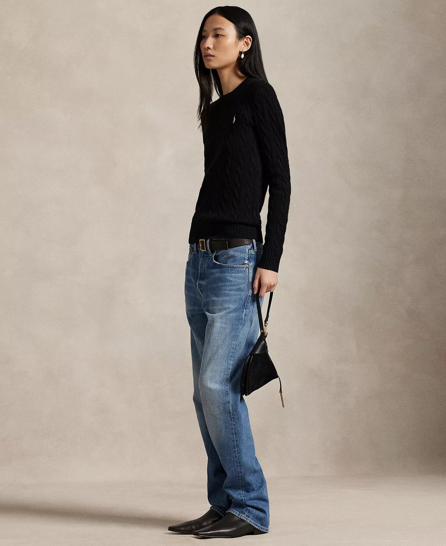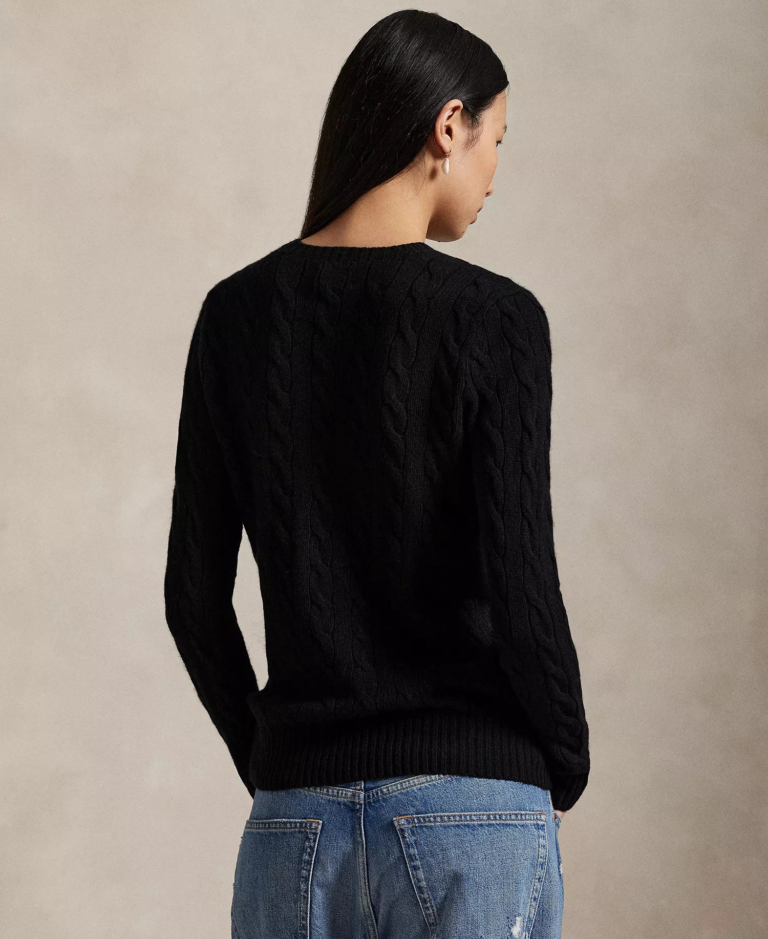 Ralph Lauren Women's Cable Wool-Cashmere Crew Neck Sweater-Polo Black