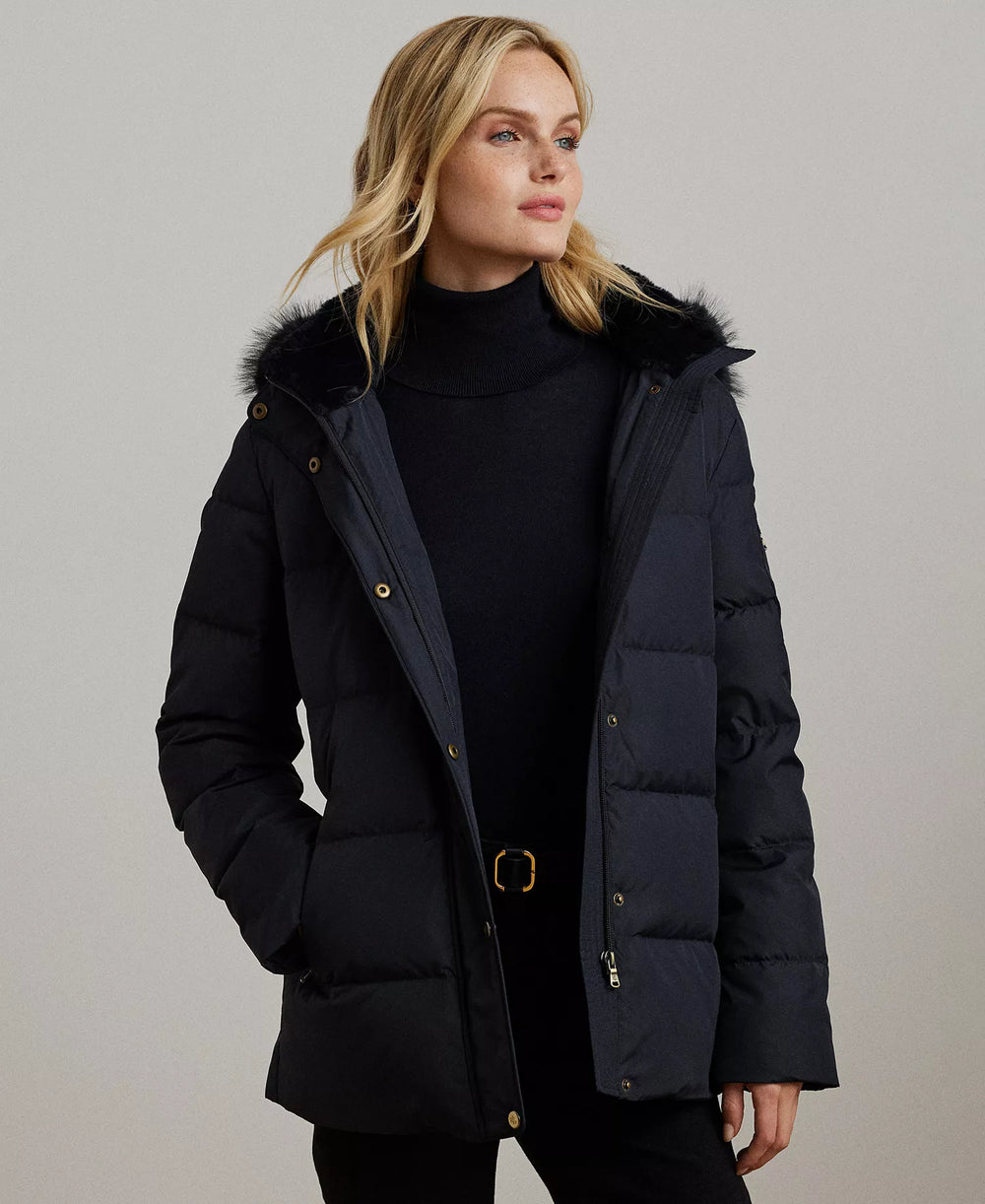 Ralph Lauren Women's Faux-Fur Hooded Puffer Coat-Dk Navy