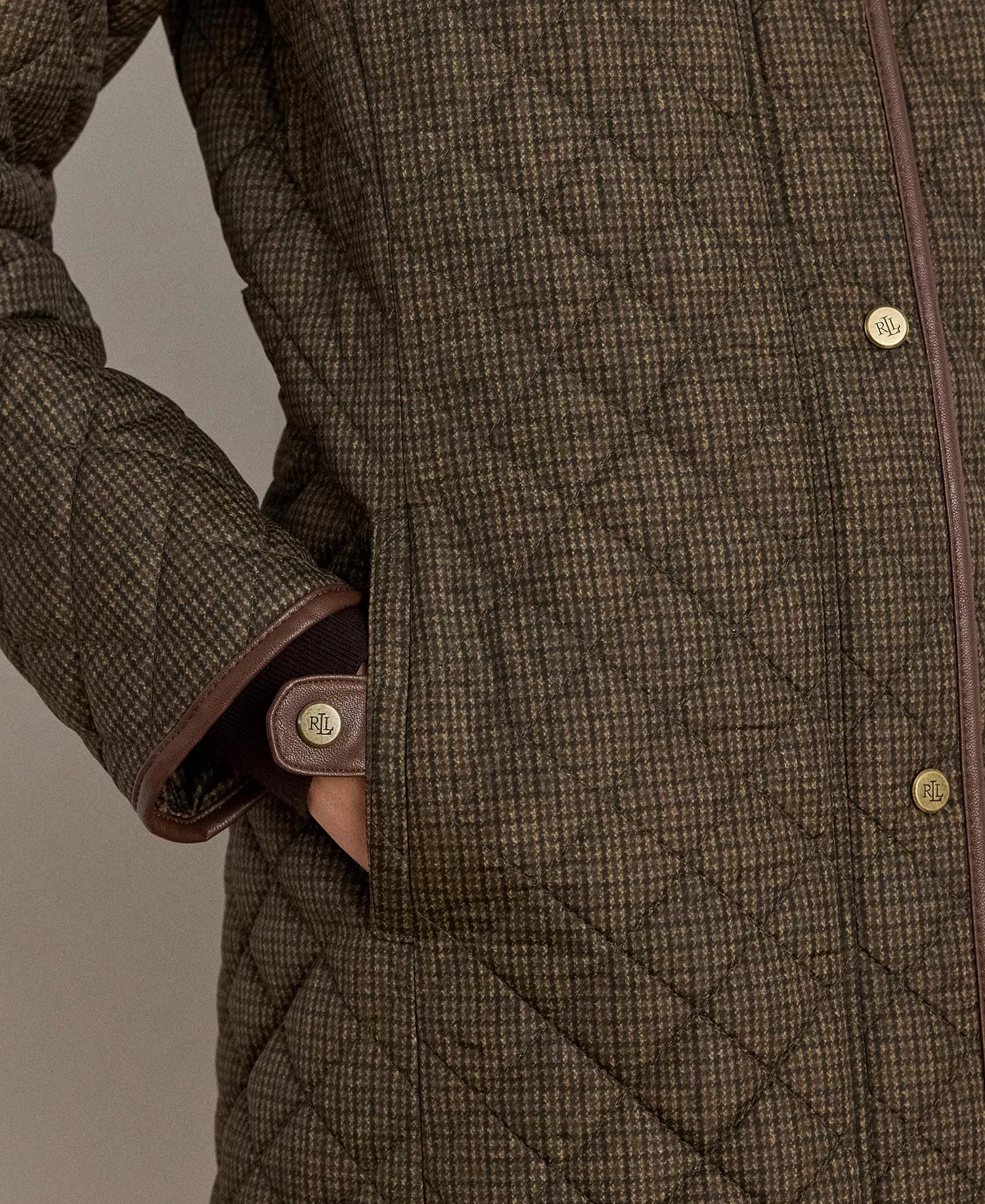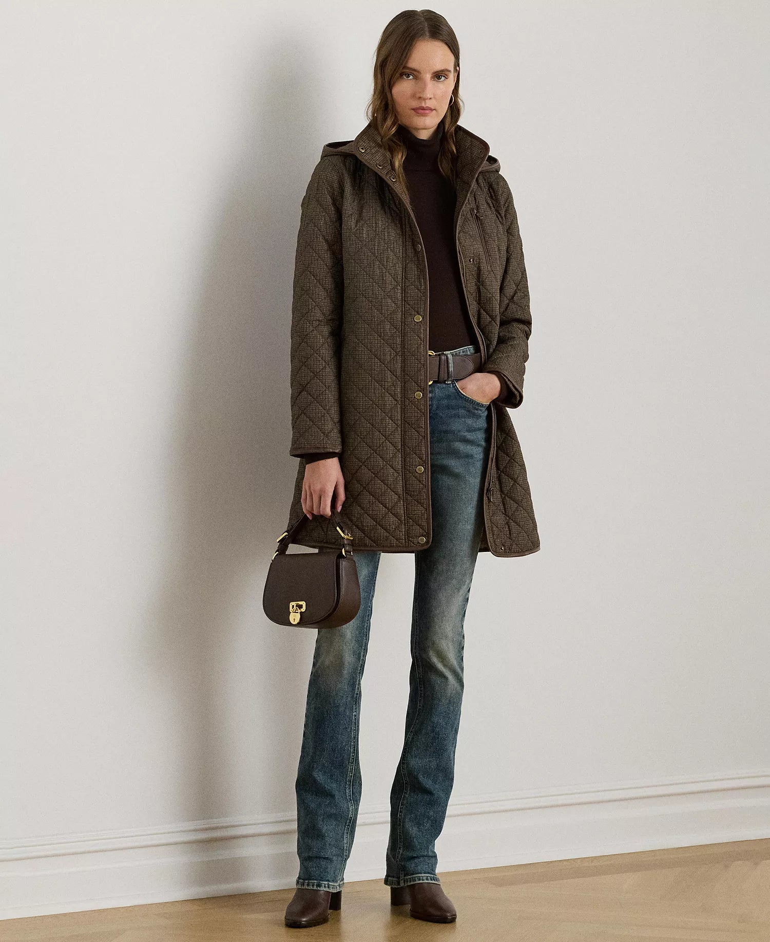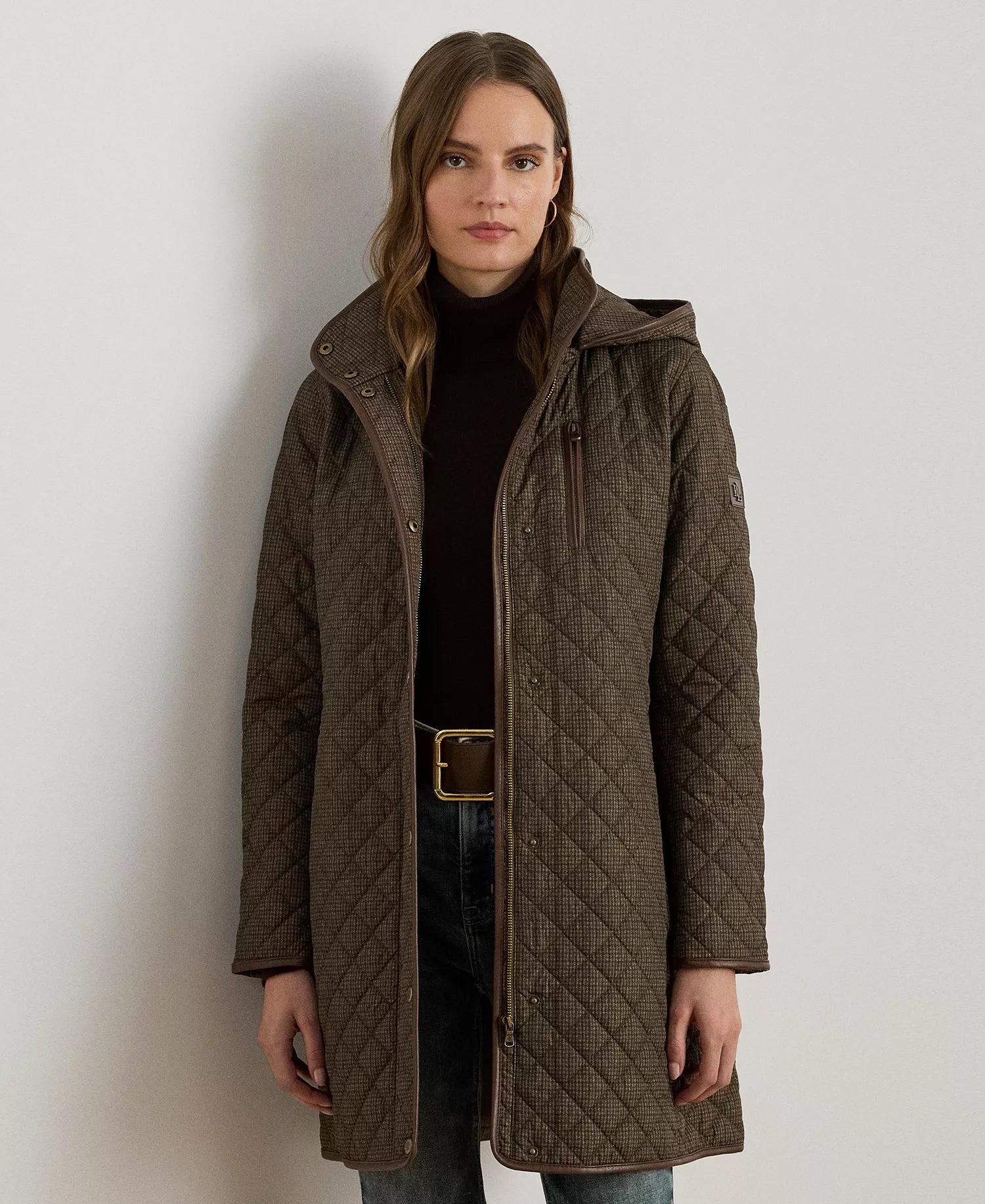 Ralph Lauren Women's Hooded Quilted Coat - Brown Mini Check