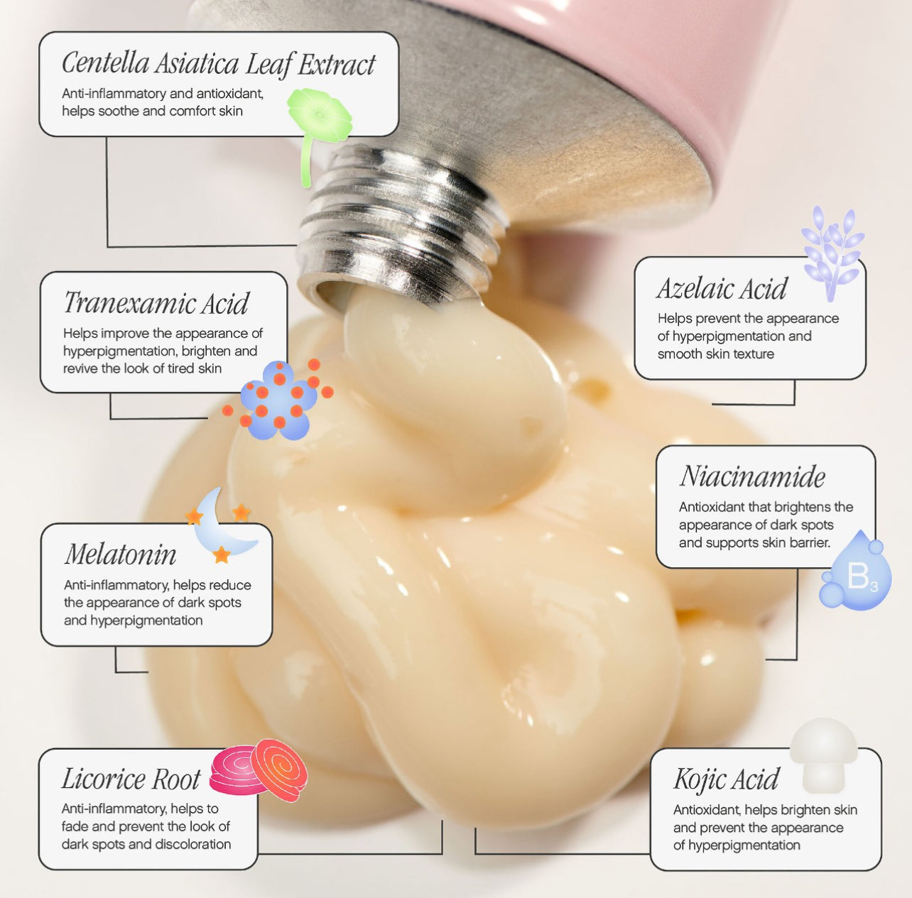 • Traneksamik Asit: Koyu lekelerin ve akne sonrası izlerin görünümünü azaltmaya yardımcı olur.