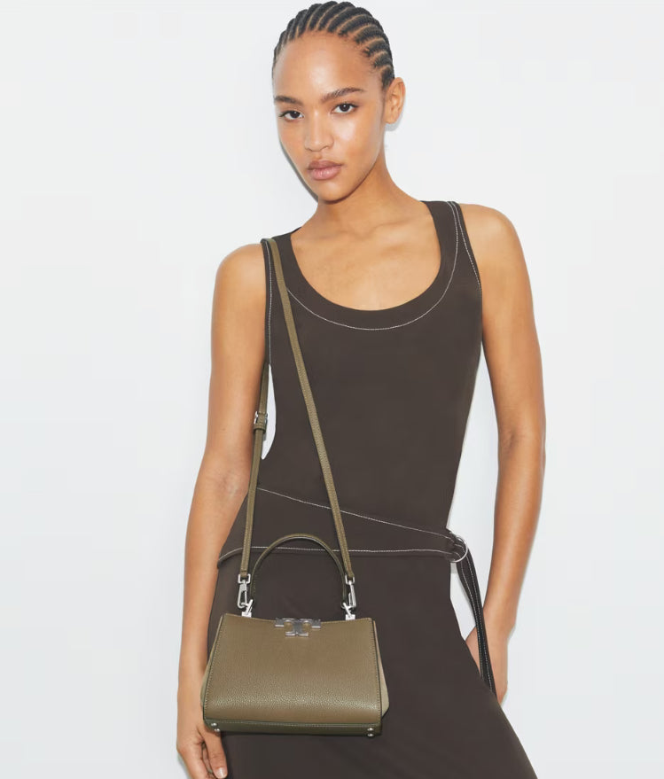 TORY BURCH MINI ELEANOR PEBBLED SATCHEL - Wild Mushroom