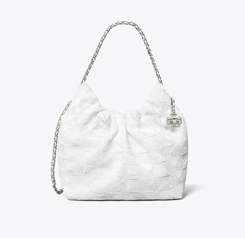 Sallantılı metal logo aksesuarı