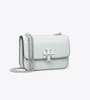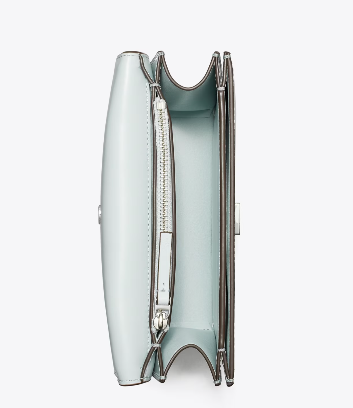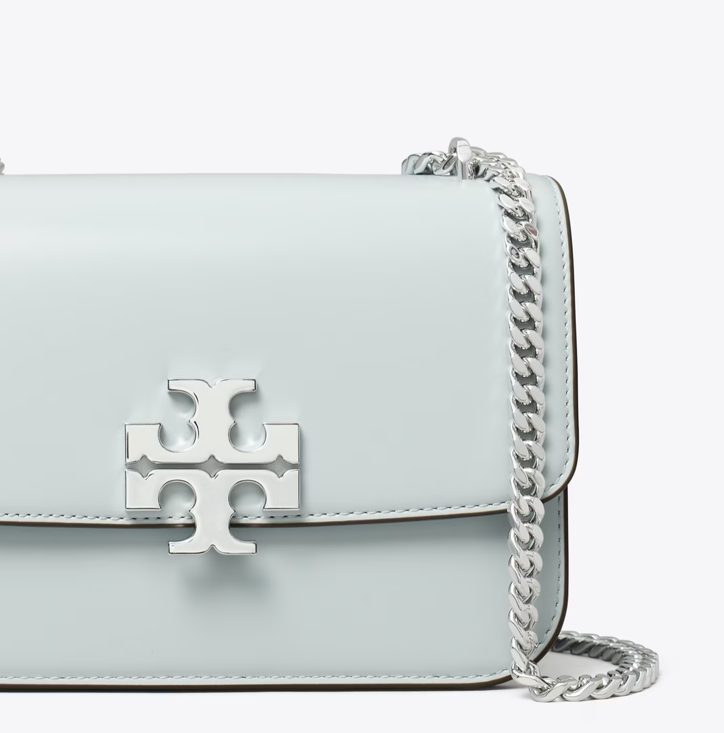 Bir zanaatkârlık mücevheri. Sadelik ve ihtişamın serin birleşimi. Düz hatların yanında, heykelsi donanımın cesur kıvrımları. Küçük Eleanor Çantamız yumuşak deriden yapılmıştır ve manyetik çıtçıt kapamalıdır. İç cepleri sayesinde kompakt ve düzenlemesi kolaydır. Zincir askıyı omuzda çift katlı ya da uzun ve çapraz şekilde takabilirsiniz.
