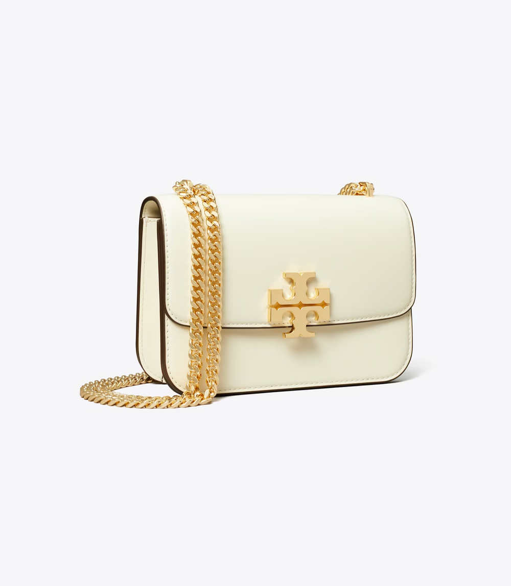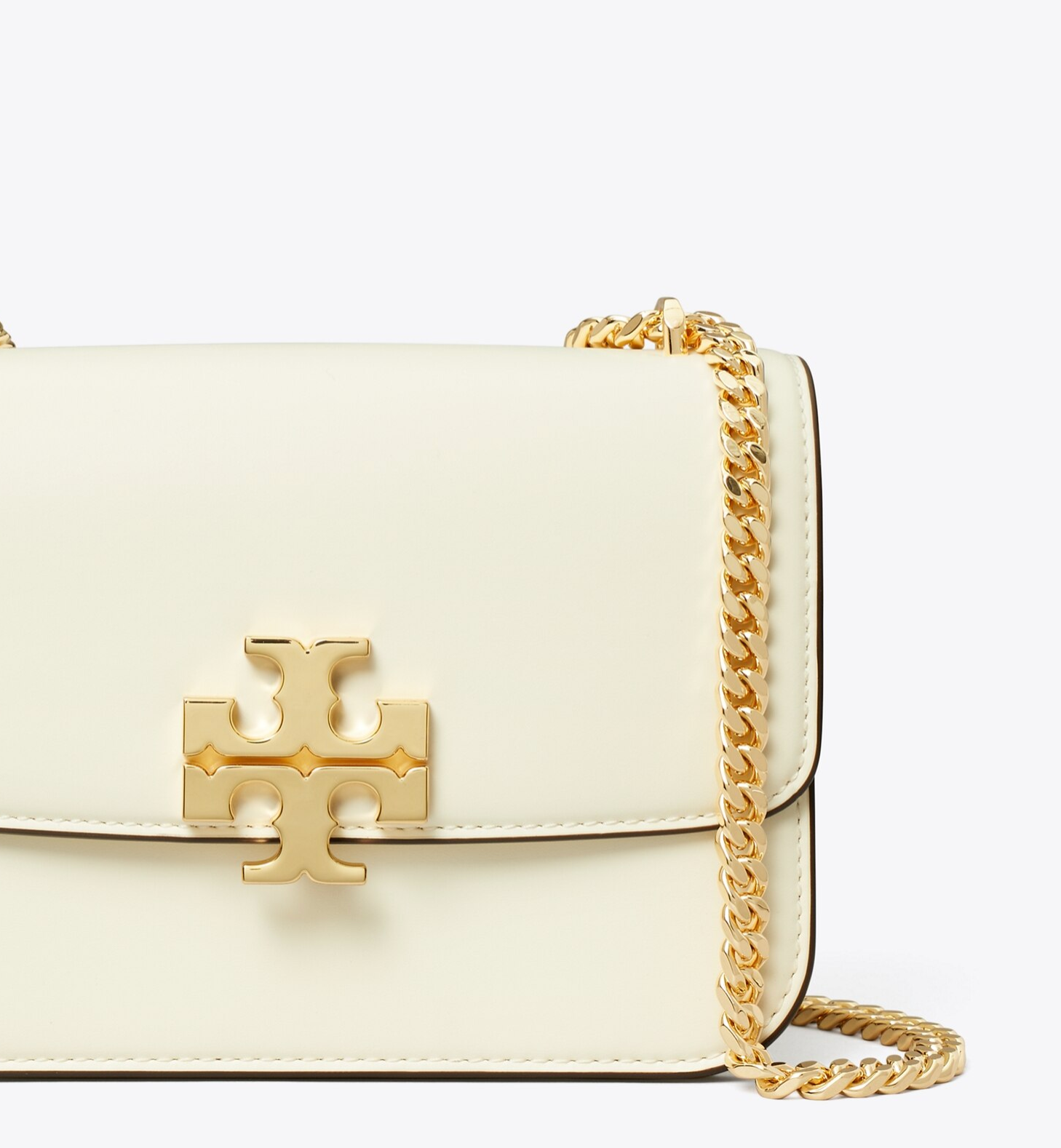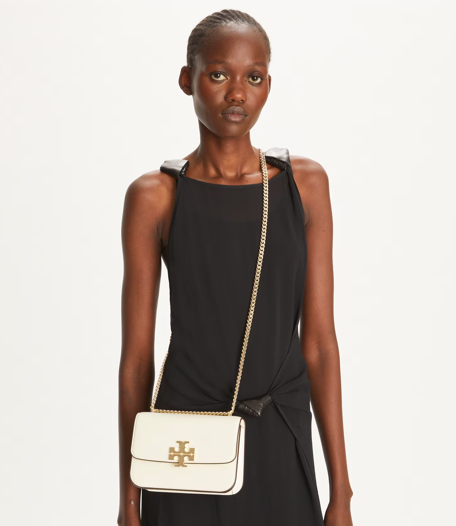 Bir zanaatkârlık mücevheri. Sadelik ve ihtişamın serin birleşimi. Düz hatların yanında, heykelsi donanımın cesur kıvrımları. Küçük Eleanor Çantamız yumuşak deriden yapılmıştır ve manyetik çıtçıt kapamalıdır. İç cepleri sayesinde kompakt ve düzenlemesi kolaydır. Zincir askıyı omuzda çift katlı ya da uzun ve çapraz şekilde takabilirsiniz.