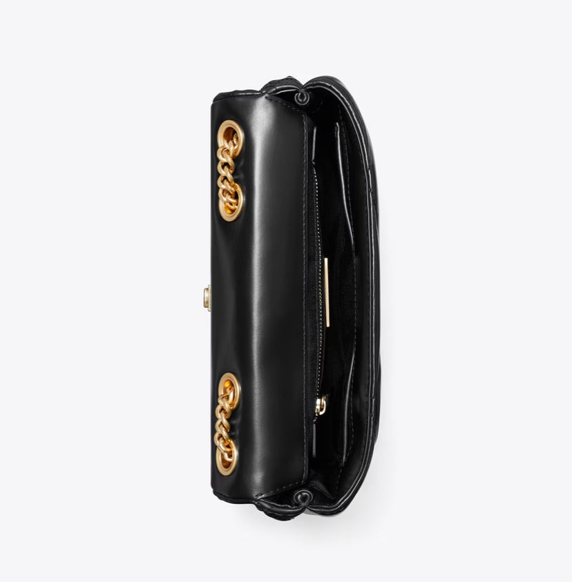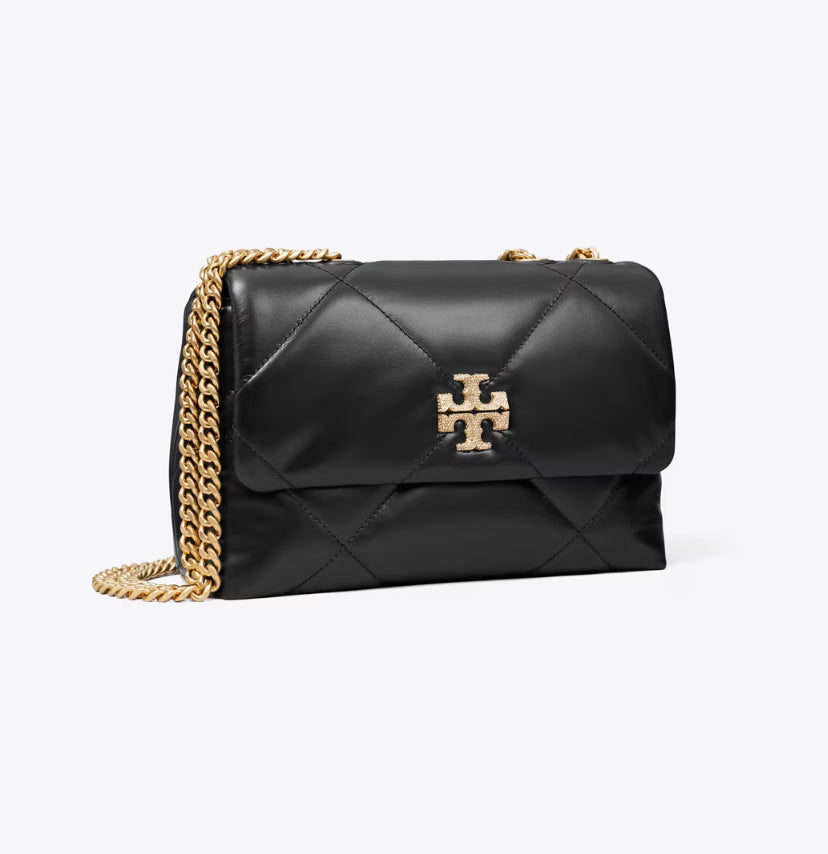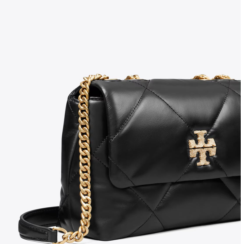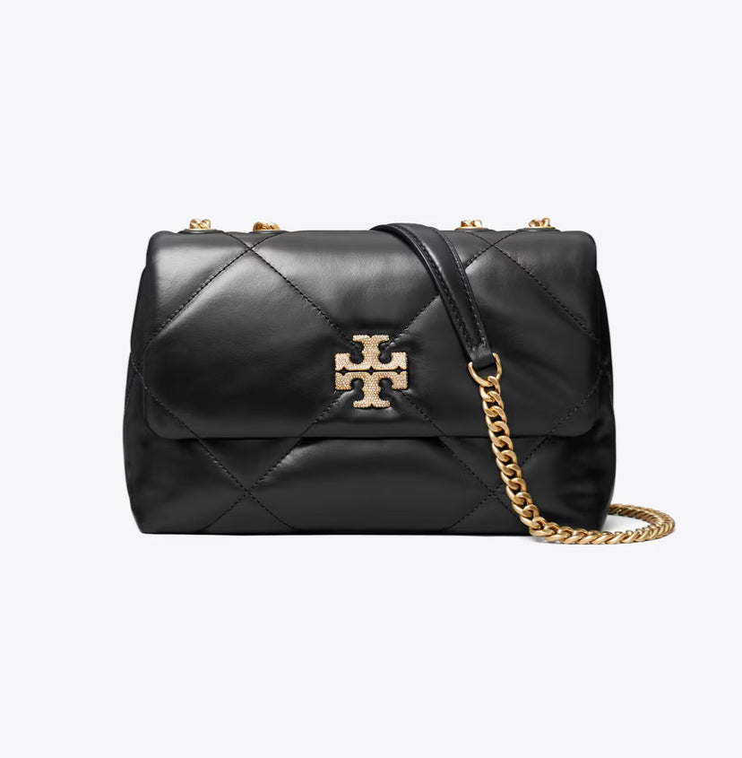 TORY BURCH SMALL KIRA DIAMOND QUILT PAVÉ SHOULDER BAG - BLACK