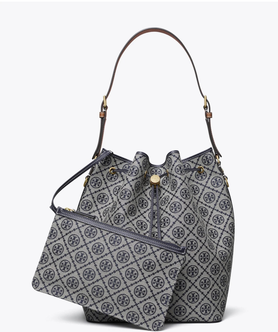 TORY BURCH T MONOGRAM OVERSIZED BUCKET BAG-Color Tory Navy