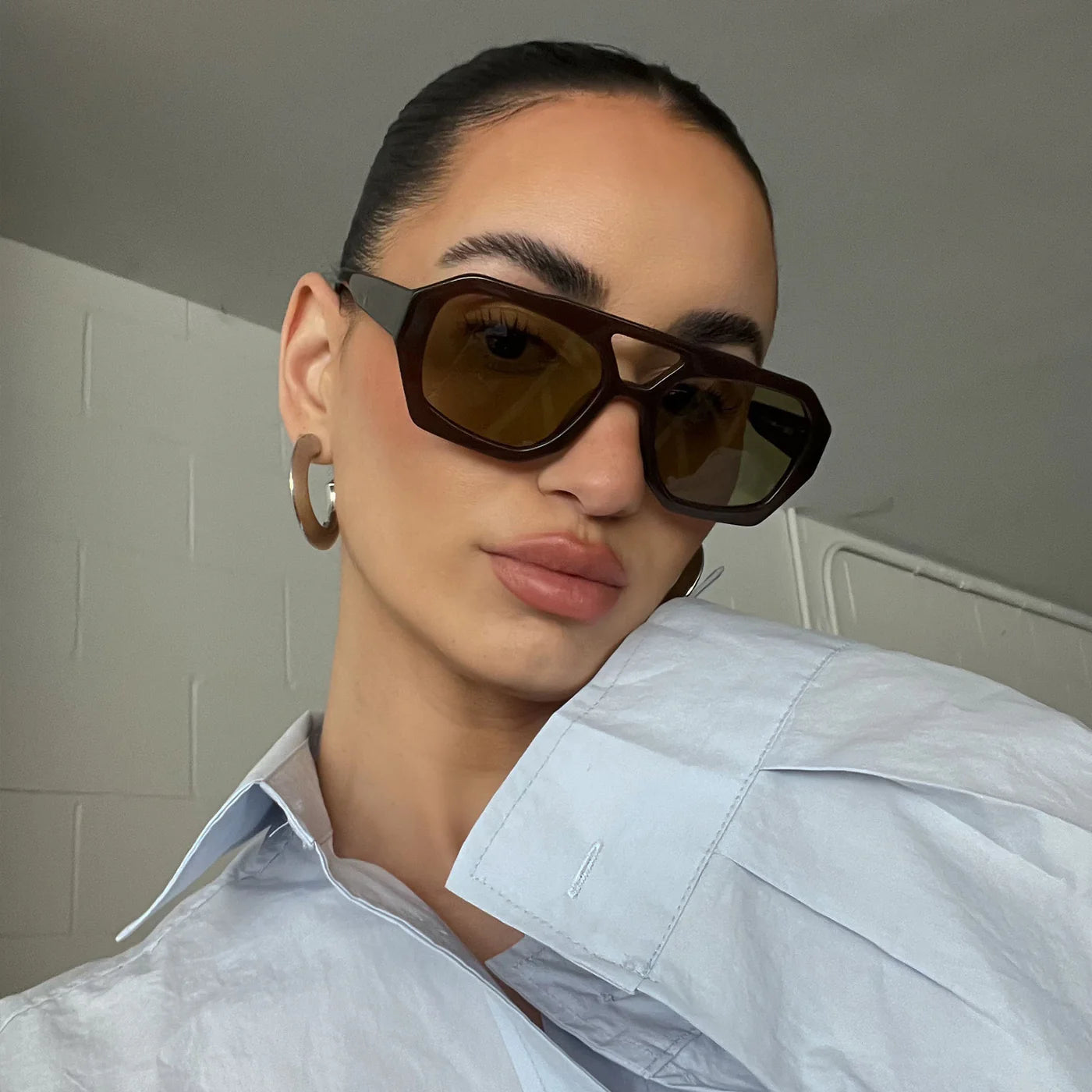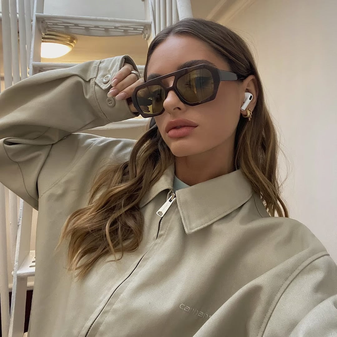 River ile tanışın. İmza aviator tarzımızın en yeni, en şık ve en güncel versiyonu. Kahverengi sekizgen çerçeve ile eşleştirilmiş haki lens.